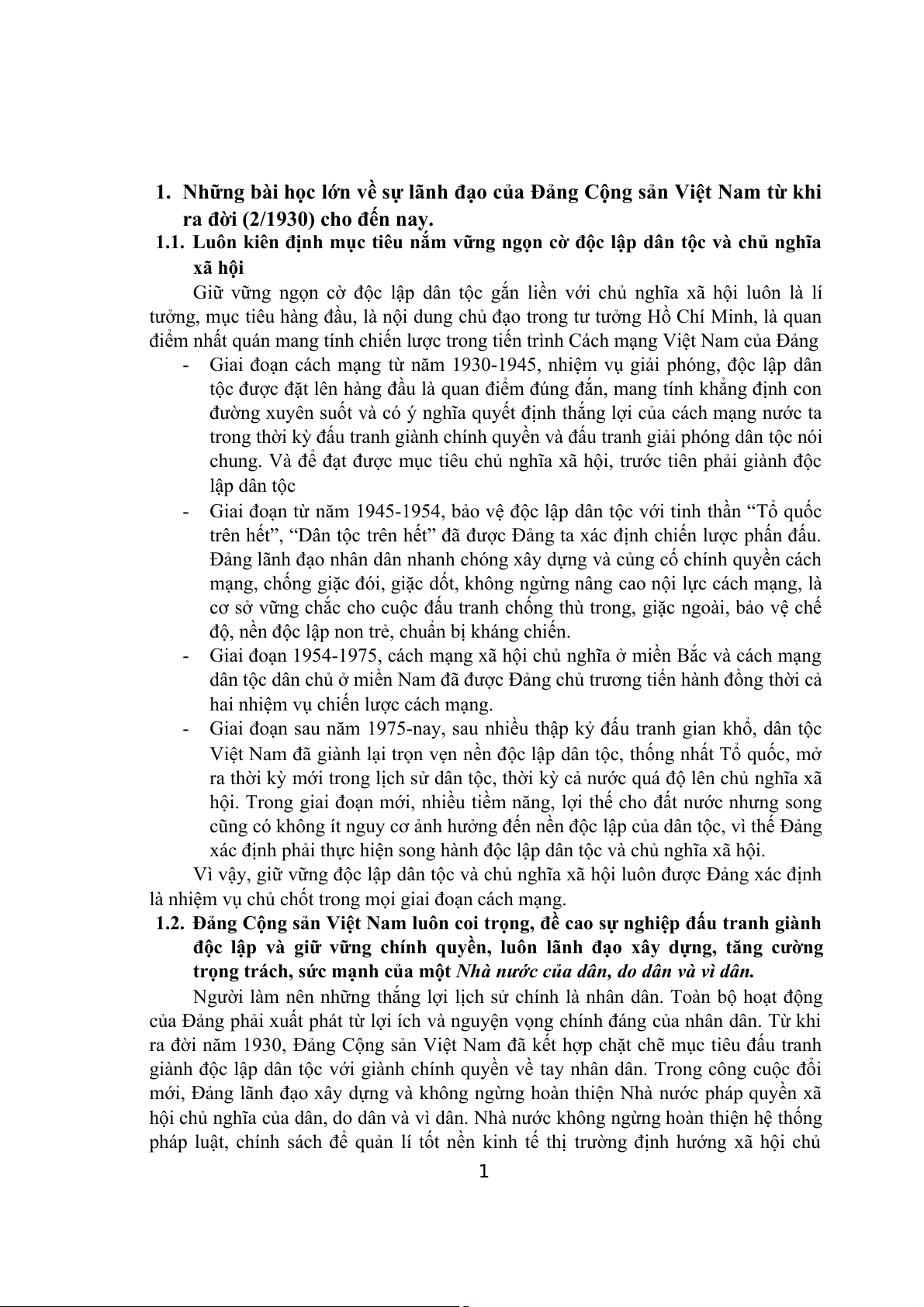 1.1. Luôn kiên định mục tiêu nắm vững ngọn cờ độc lập dân tộc và chủ nghĩa xã hội.....1