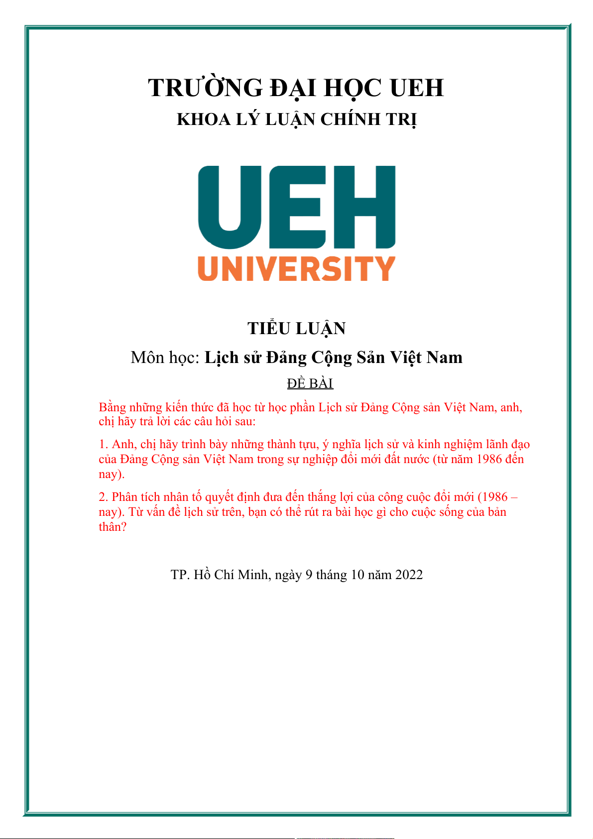 TP. Hồ Chí Minh, ngày 9 tháng 10 năm 2022