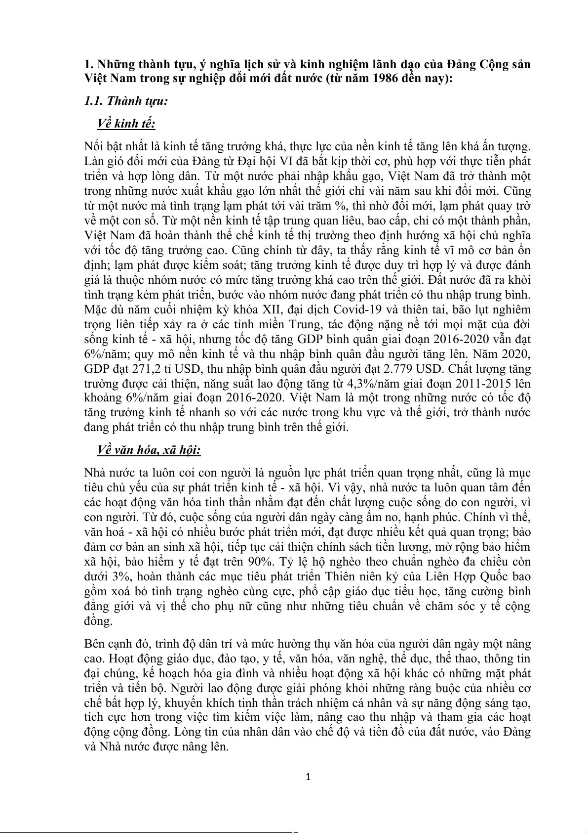 1. Những thành tựu, ý nghĩa lịch sử và kinh nghiệm lãnh đạo của Đảng Cộng sản