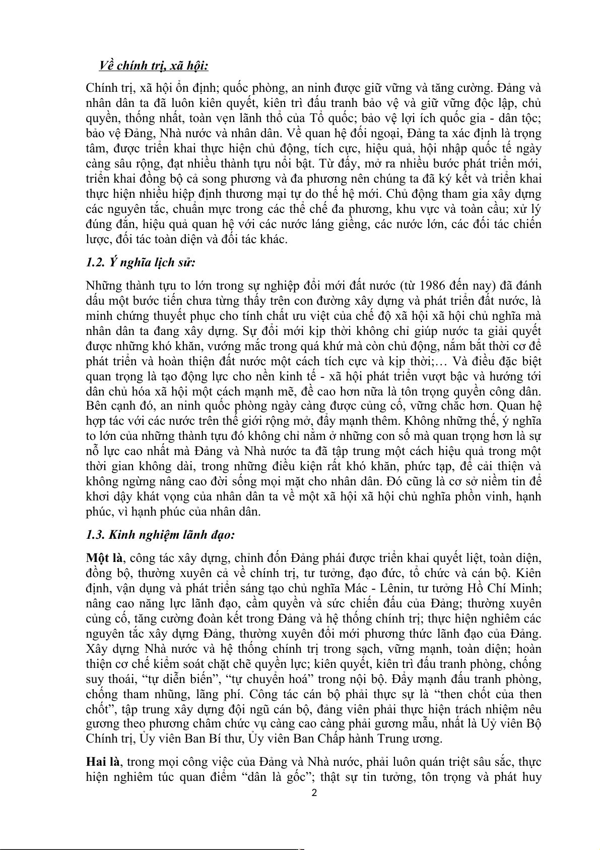 Qua những thành tựu cũng như kinh nghiệm lãnh đạo của Đảng trong công cuộc đổi