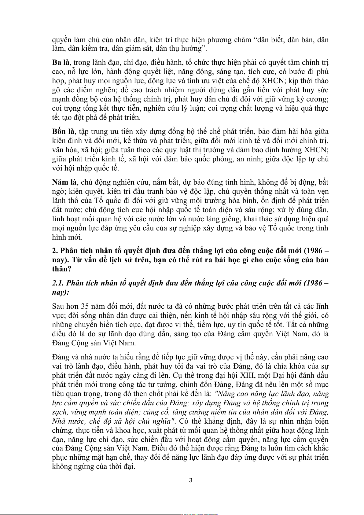 2.1. Phân tích nhân tố quyết định đưa đến thắng lợi của công cuộc đổi mới (1986 – nay):