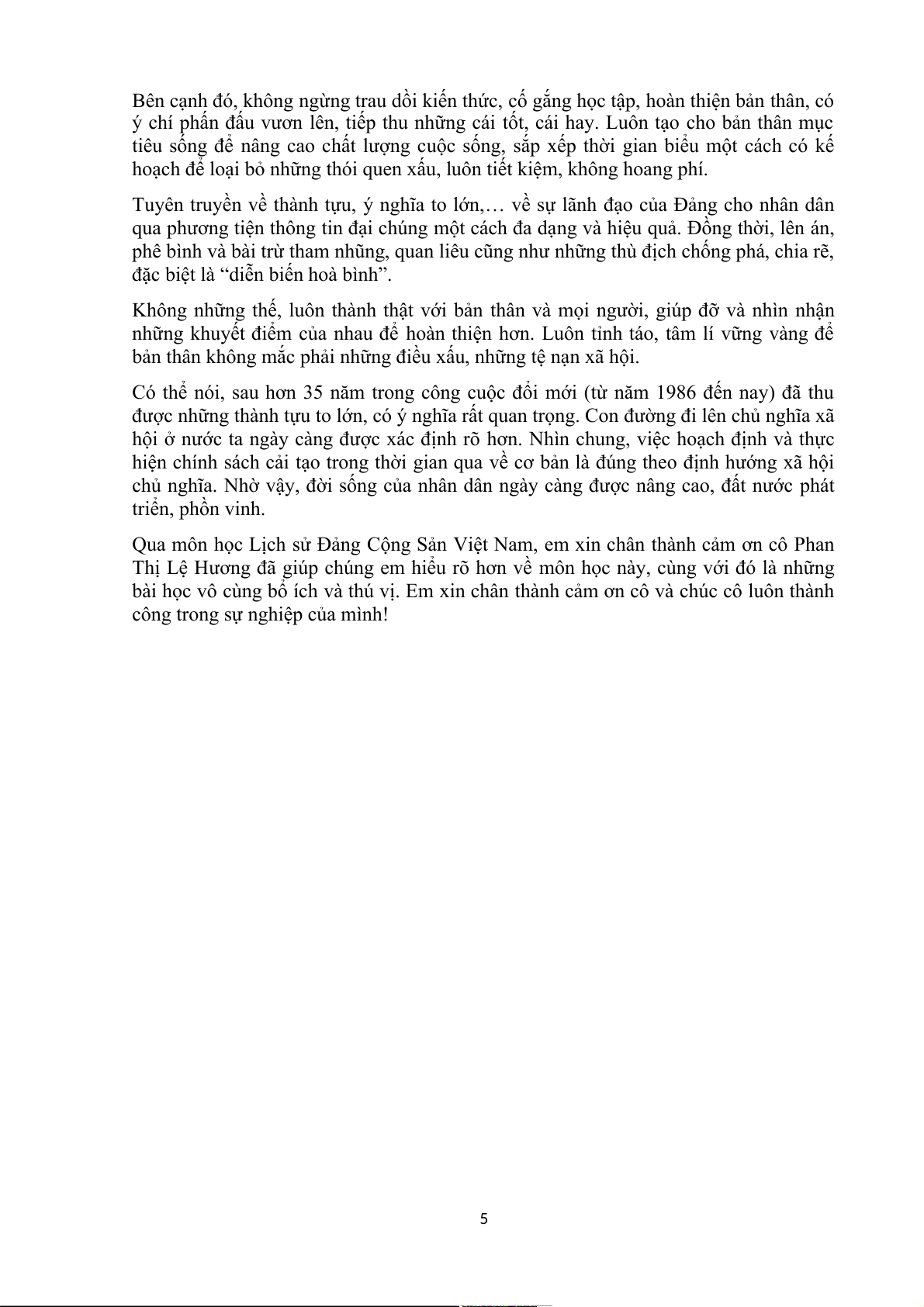Qua môn học Lịch sử Đảng Cộng Sản Việt Nam, em xin chân thành cảm ơn cô Phan