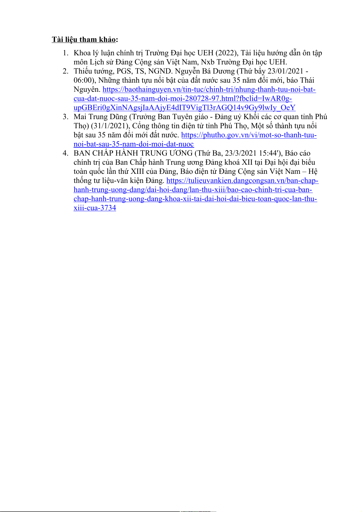 1. Khoa lý luận chính trị Trường Đại học UEH (2022), Tài liệu hướng dẫn ôn tập