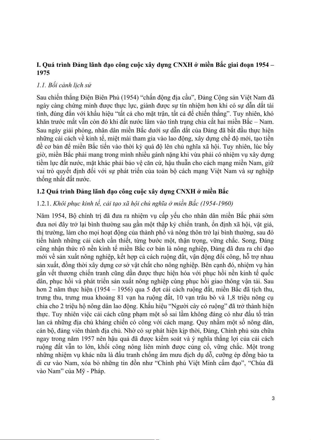1.2 Quá trình Đảng lãnh đạo công cuộc xây dựng CNXH ở miền Bắc