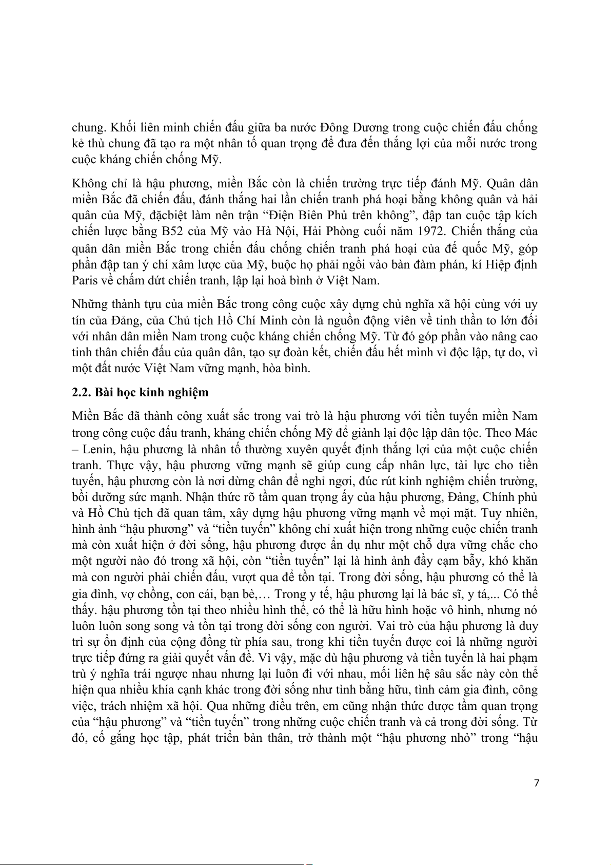 2.1. Vai trò của hậu phương miền Bắc đối với tiền tuyến miền Nam trong cuộc kháng