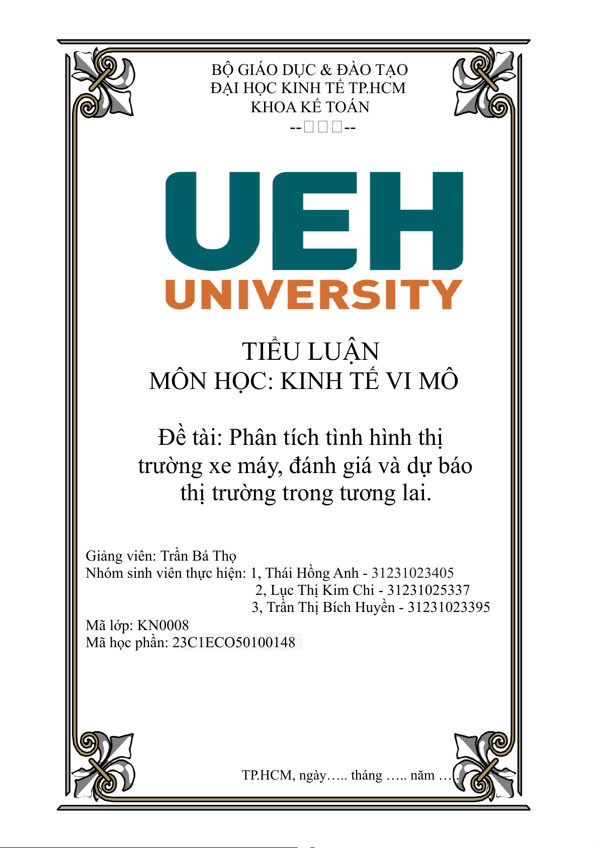 BỘ GIÁO DỤC & ĐÀO TẠO ĐẠI HỌC KINH TẾ TP.HCM KHOA KẾ TOÁN -- -- TIỂU LUẬN MÔN HỌC: KINH TẾ VI MÔ