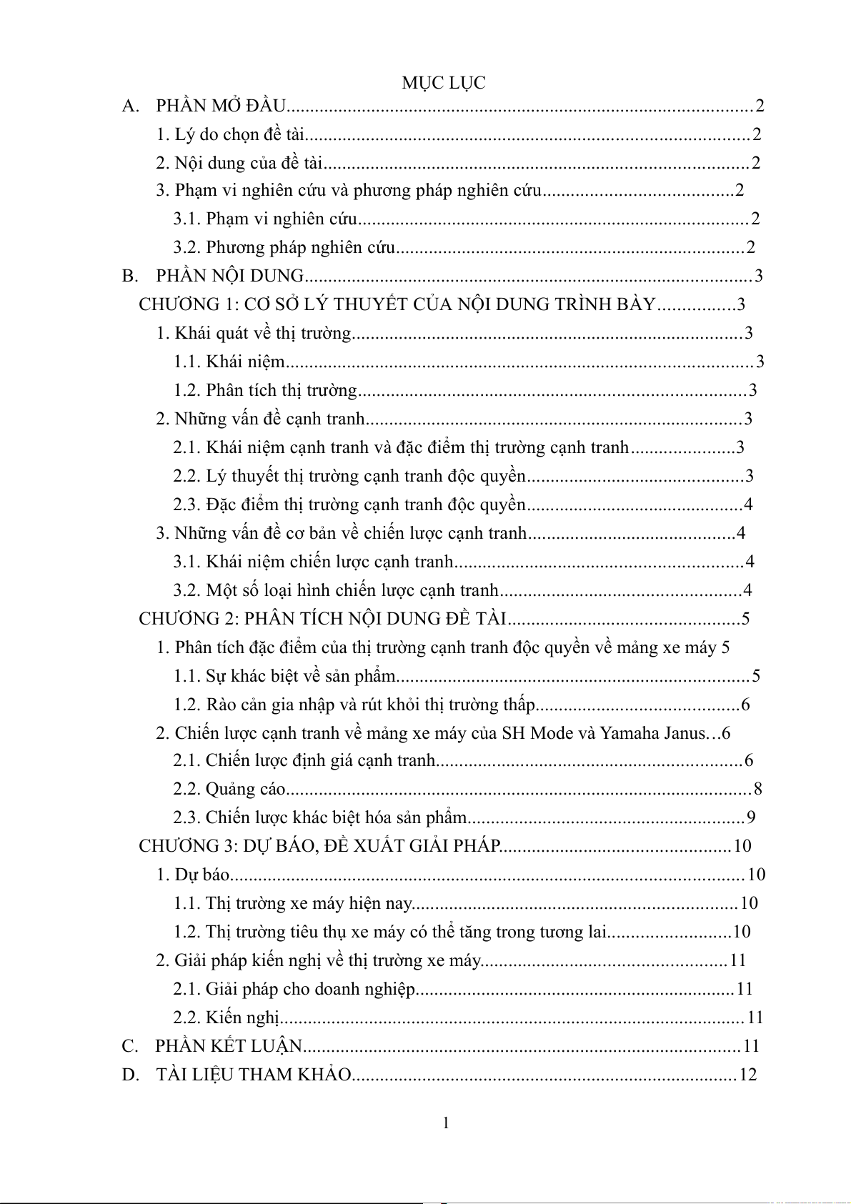 1. Phân tích đặc điểm của thị trường cạnh tranh độc quyền về mảng xe máy 5