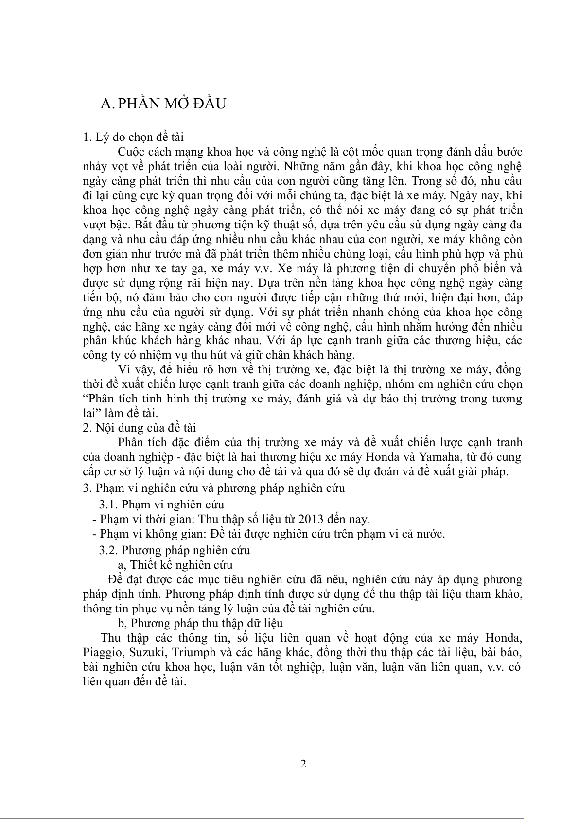 Phân tích đặc điểm của thị trường xe máy và đề xuất chiến lược cạnh tranh