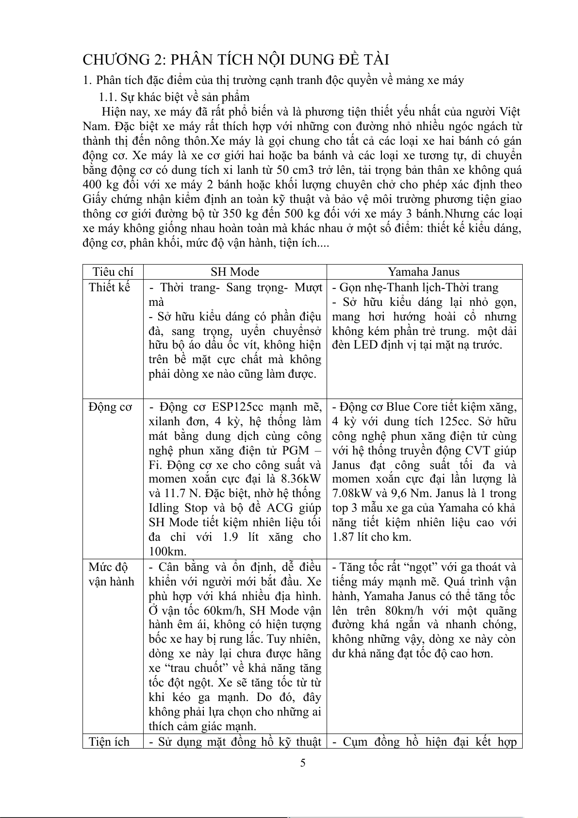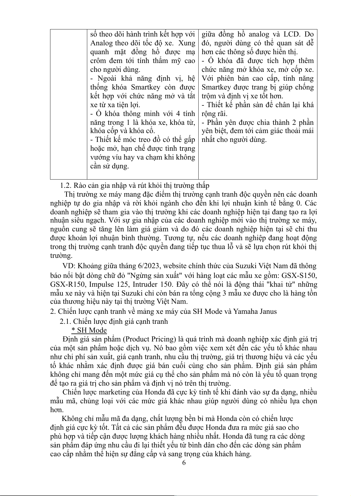 2. Chiến lược cạnh tranh về mảng xe máy của SH Mode và Yamaha Janus...6