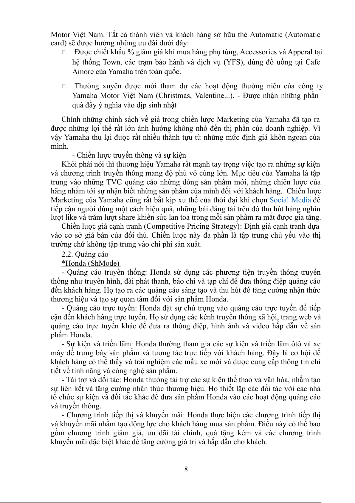 của doanh nghiệp - đặc biệt là hai thương hiệu xe máy Honda và Yamaha, từ đó cung