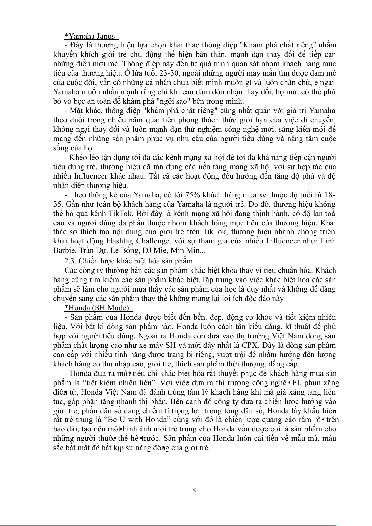 2.3. Chiến lược khác biệt hóa sản phẩm...........................................................9
