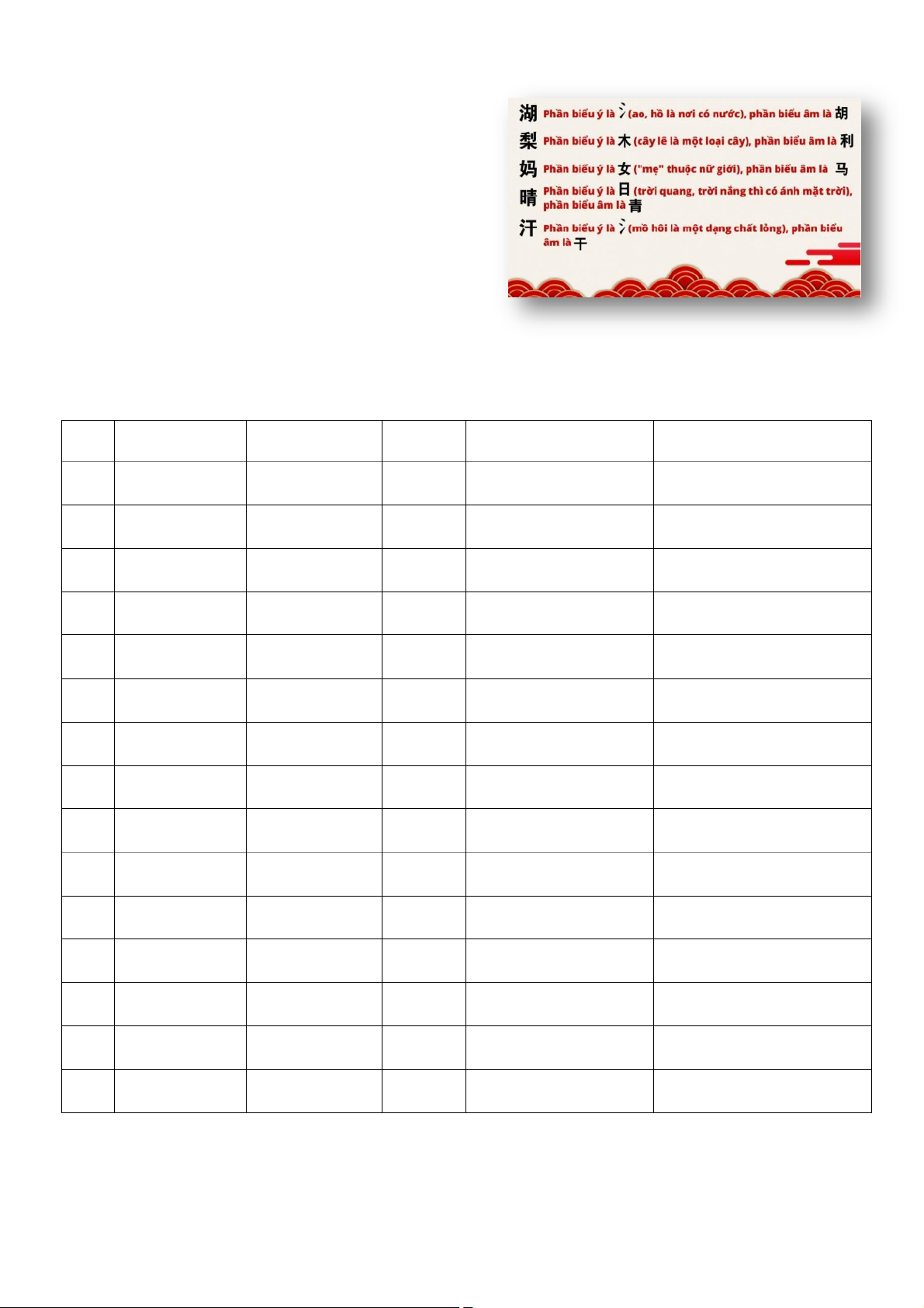 3.6 Phương pháp nhớ mặt chữ Hán hiệu quả. . . . . . . . . . . . . . . . . . . . . . . . . . . . . . . . . . . . . . . . . . . . . . 17