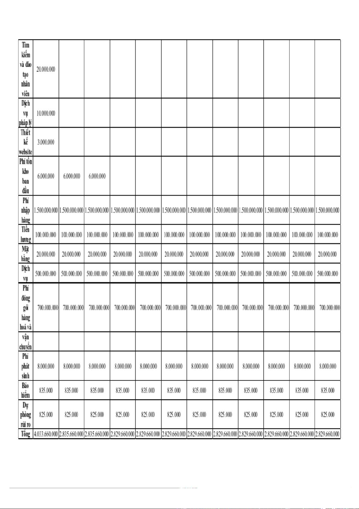 ❖ Tổng nguồn vốn của nhóm khởi nghiệp