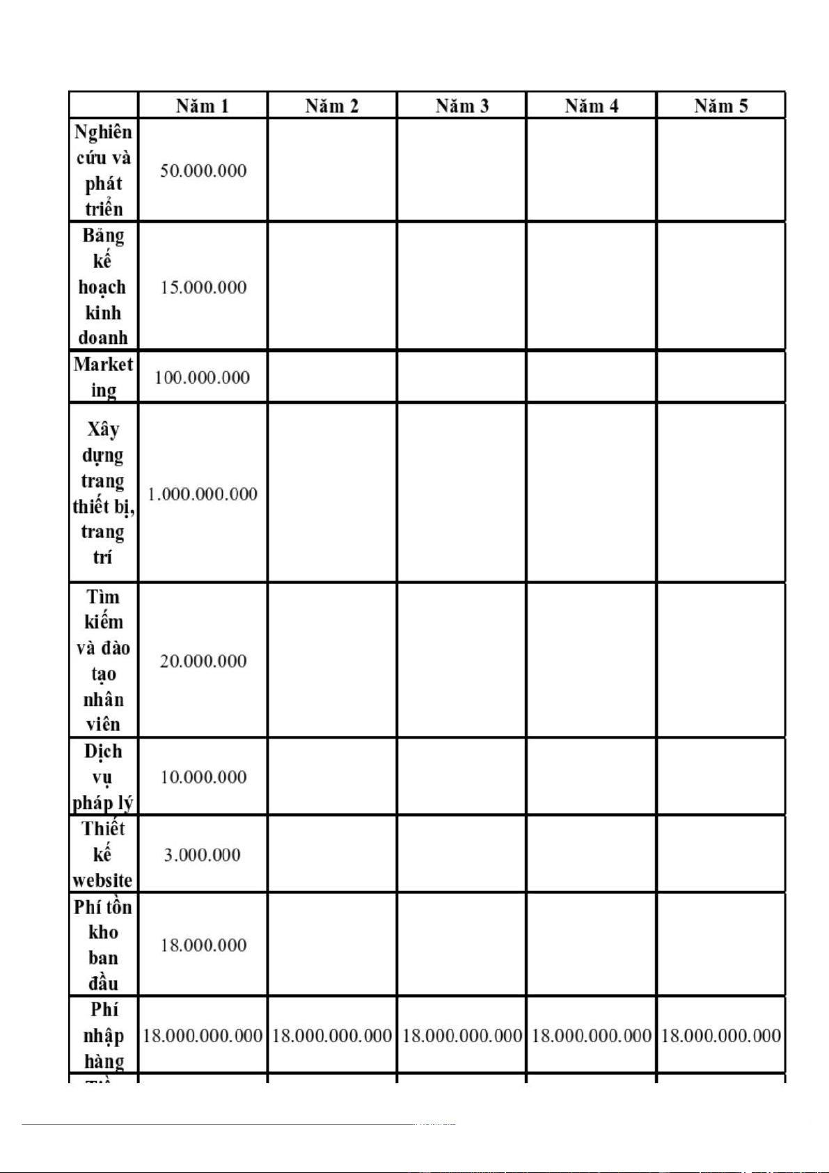 -Chi phí dự kiến cho 5 năm đầu. 6. KẾT LUẬN 2 LỜI CẢM ƠN 1 LỜI MỞ ĐẦU