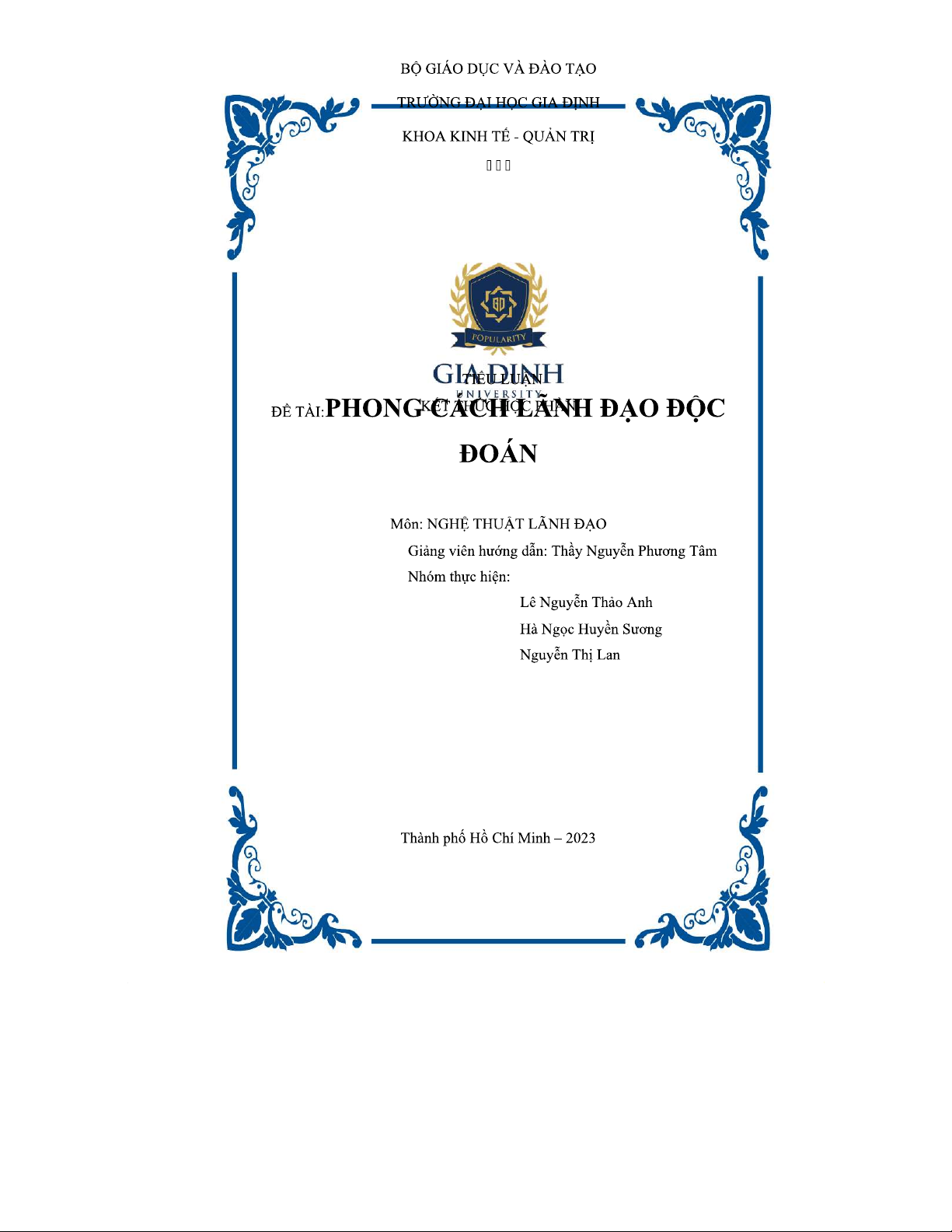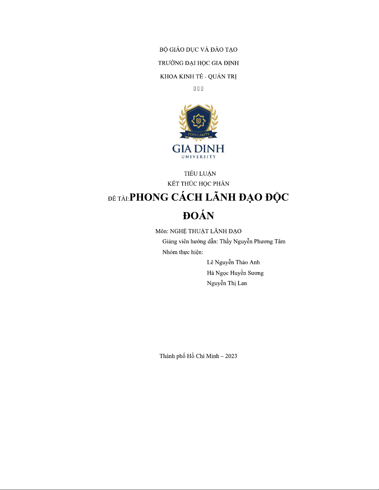 Tiểu luận Nghệ Thuật Lãnh Đạo: Phong Cách Lãnh Đạo Độc Đoán - CKT Tanh