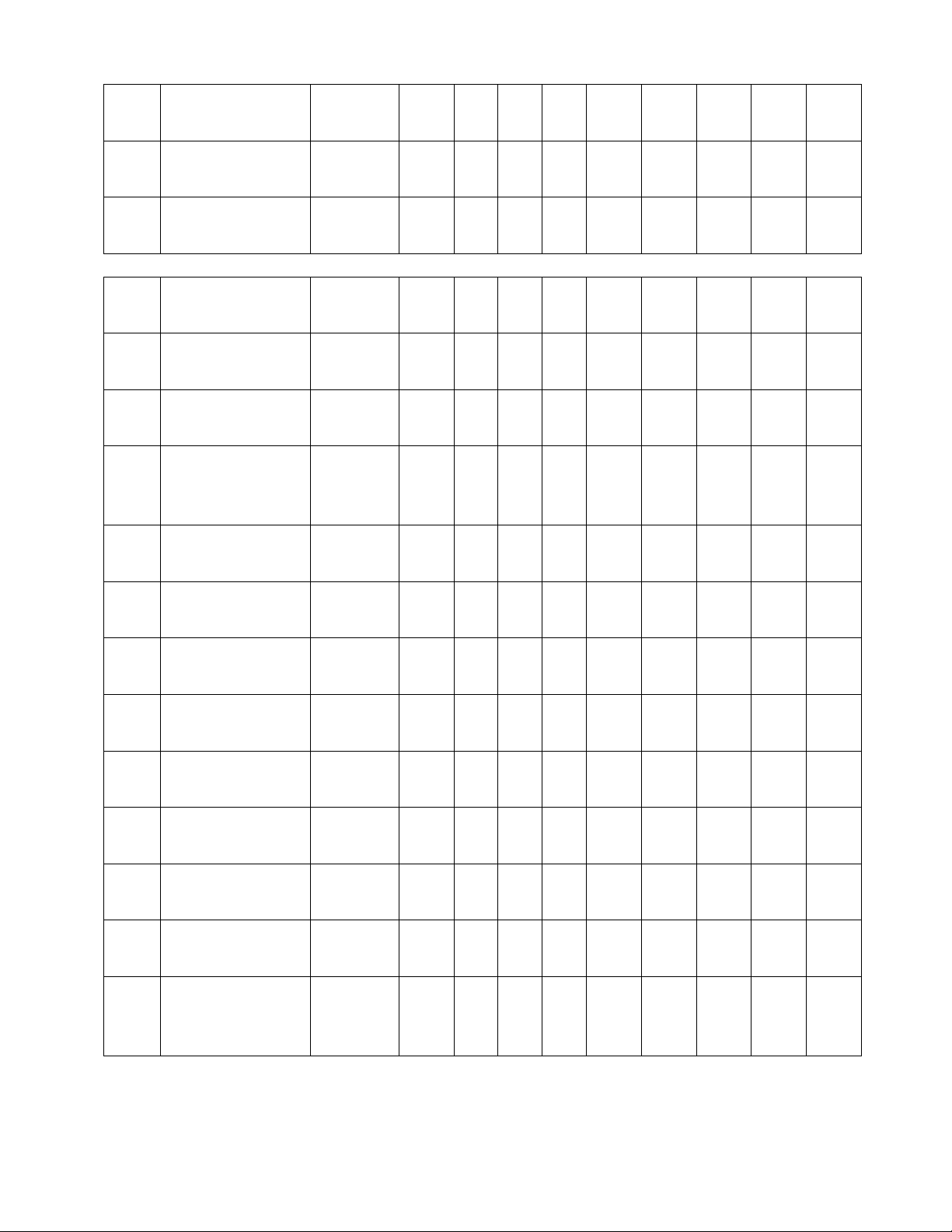 BẢNG THỐNG KÊ KẾT QUẢ KHẢO SÁT N: Thứ tự mẫu CH1-CH9: Câu 1. Rất hài lòng 2. Hài lòng 3. Bình thường 4. Không hài lòng 5. Rất không hài lòng N Họ và tên Địa chỉ C1 C2 C3 C4 C5 C6 C7 C8 C9 Phạm Tiến Hoàng 1 5 Dũng 3 2 1 3 4 1 1 3 Mai Hoàng Thuỳ Thanh 2 3 Trang 1 3 5 4 5 2 5 2 Xuân Ngô Tuyết Long 3 4 Mai 3 4 4 3 4 4 3 3 Biên Hoàng Thị Hoàng 4 1 Thùy 4 3 3 1 2 2 1 4 Mai Nguyễn Thị Thanh 5 1 Nhi 2 1 5 4 2 2 3 2 Xuân Long 6 5 Sơn Bách 1 2 2 3 2 3 3 2 Biên Nguyễn Thị Hoàng 7 3 Ngọc 3 5 3 3 4 1 5 5 Mai Nguyễn Ngọc Thanh 8 3 Dương 4 2 2 1 1 3 4 3 Xuân Phạm Thị Long 9 2 Loan 2 1 3 5 3 3 3 4 Biên Lang Tuấn Hoàng 10 3 Minh 4 1 2 3 4 2 5 2 Mai Hoàng Văn Thanh 12 1 Thiệu 3 1 2 2 2 2 3 3 Xuân Cầu 13 1 Vũ Thị Giang 1 4 4 5 4 1 4 4 Giấy 14 lOMoAR cPSD| 45474828 14 Phạm Thị Hai Bà 5 2 1 2 3 4 2 1 5 Trang Trưng 15 Hoàn Lê Đình Nghĩa Kiếm 5 4 4 2 1 5 3 1 4 16 Phạm Văn Đống Thịnh Đa 4 2 2 5 5 2 5 3 5 17 Nguyễn Văn Hà Tân Đông 3 5 5 5 2 5 3 1 2 18 Nam Nguyễn Thị Từ Kim Chi Liêm 5 5 4 4 1 2 3 1 1 19 Hoàng Thị Long Dung Biên 2 5 5 5 2 5 5 3 4 20 Nguyễn Văn Hoàng Thành Mai 4 3 4 1 4 2 2 2 1 21 Nguyễn Khắc Thanh Bắc Xuân 3 5 4 1 4 2 2 1 4 Cầu 5 22 Lê Thị Thủy giấy 4 5 3 4 4 1 1 1 Nguyễn Văn Hai Bà 23 Đại Trưng 1 1 4 5 5 5 1 1 2 Nguyễn Hùng Hoàn 24 Tráng Kiếm 3 3 5 4 3 5 3 3 2 Đống 25 Lê Thị Thúy Đa 5 1 1 2 1 3 3 2 3 Nguyễn Hữu Hà 26 Quốc Đông 1 1 5 1 4 5 4 4 2 Nam Từ 27 Phạm Linh Chi Liêm 3 2 2 2 5 5 4 3 5 Long 28 Đặng Duy An Biên 3 2 3 2 4 2 2 2 5 Lê Thị Thảo Hoàng 29 Ly Mai 4 1 5 2 3 3 3 2 3 15 lOMoAR cPSD| 45474828 Nguyễn Đức Thanh 30 Anh Xuân 4 3 4 5 3 2 2 1 4 Lê Trọng Bảo Cầu 31 Ngọc Giấy 3 2 3 3 5 3 4 4 1 Hai Bà 32 Lê Tiến Hạnh Trưng 5 2 2 3 4 5 4 4 2 Hoàn 33 Cao Thị Ngân Kiếm 2 3 5 3 1 4 1 1 1 Lê Đức Tuấn Đống 34 Minh Đa 3 3 1 4 2 4 1 2 1 Nguyễn Thị Hà 35 Thanh Huyền Đông 5 1 5 2 1 1 5 1 1 Nam Từ 36 Vũ Thế Nam Liêm 3 5 3 3 5 3 5 5 4 Long 37 Lê Thị Lê Na Biên 2 1 2 4 5 3 3 3 1 Nguyễn Thị Hoàng 38 Bích Hằng Mai 4 2 2 5 1 3 2 5 3 Mai Thị Thanh 39 Hương Xuân 1 2 5 1 5 1 3 4 1 Nguyễn Cầu 40 Phương Thùy Giấy 2 1 1 1 2 5 4 5 3 Nguyễn Mạnh Hai Bà 41 Cường Trưng 1 2 2 1 2 1 2 2 1 Phạm Thị Hoàn 42 Xuân Quỳnh Kiếm 4 5 2 1 4 4 3 2 4 Hoàng Thị Đống 43 Ngọc Đa 4 4 4 5 5 5 2 2 3 Đặng Thị Hà 44 Minh Châu Đông 1 4 3 1 4 4 3 1 5 Nam Nguyễn Từ 45 Khương Duy Liêm 2 4 1 5 4 1 3 4 5 16 lOMoAR cPSD| 45474828 Vũ Thị Hải Long 46 Yến Biên 4 3 4 4 2 3 1 4 5 Phạm Đình Hoàng 47 Thành Mai 1 2 3 3 3 3 5 3 1 Thanh 48 Trần Thị Thảo Xuân 1 2 5 4 4 4 5 5 4 Nguyễn Tiến Cầu 49 Dũng Giấy 3 1 3 4 5 1 5 3 4 Nguyễn Thị Hai Bà 50 Thảo Trưng 4 3 1 1 4 5 3 2 3 51 Lê Thị Thùy Hoàn 1 4 1 2 3 3 4 1 5 Linh Kiếm Đống 52 Vũ Thị Huệ Đa 1 4 4 2 4 3 4 2 5 Phạm Văn Hà 53 Quyền Đông 3 3 5 5 5 3 5 2 1 Nam Hoàng Văn Từ 54 Việt Liêm 2 1 5 5 3 4 3 1 1 Long 55 2 Mai Thị Dung 1 1 1 2 1 5 2 3 Biên Hoàng 56 1 Lê Văn Anh 5 5 1 3 1 1 4 5 Mai Thanh 57 2 Bùi Thị Hiệp 4 4 3 1 5 1 3 4 Xuân Cầu 58 4 Ngô Thị Dung 4 2 1 2 5 3 5 1 Giấy Trịnh Thị Hai Bà 59 1 Trang 2 1 3 4 3 5 3 4 Trưng Hoàn 60 3 Vũ Ngọc Anh 3 1 4 3 4 3 3 5 Kiếm Đống 61 5 Lê Văn Nghĩa 1 3 5 5 5 2 4 5 Đa Bùi Thanh Hà 62 2 Xuân 2 3 2 4 5 3 1 1 Đông 17 lOMoAR cPSD| 45474828 Nam 63 Phạm Ánh Từ 4 3 4 1 3 5 3 1 3 Dương Liêm Lê Thảo Long 64 2 Nguyên 5 5 5 2 1 4 4 2 Biên Nguyễn Thị Hoàng 65 5 Trang 5 4 5 5 2 1 2 1 Mai Phạm thị minh Thanh 66 2 ánh 5 2 5 4 2 3 2 4 Xuân Cầu 67 1 Lê Thị Thảo 4 5 3 1 3 1 3 1 Giấy Nguyễn Trọng Hai Bà 68 3 Thảo 1 1 5 4 2 4 4 3 Trưng Phạm Minh Hoàn 69 2 Tuấn 4 3 4 1 4 1 4 2 Kiếm Đặng Phương Đống 70 2 Thảo 4 2 1 4 3 2 3 5 Đa Hoàng Ngọc Hà 71 5 Linh 3 1 1 2 4 2 3 3 Đông Nam 72 Từ 2 1 2 1 4 5 4 1 5 Lê Thị Hằng Liêm Lưu Thiện Long 73 3 Siêu 2 1 5 5 4 1 2 5 Biên Nguyễn Đình Hoàng 74 4 Nhất Linh 3 2 1 2 2 4 3 2 Mai Thanh 75 5 Lê Thị Loan 3 5 5 4 3 2 4 2 Xuân Cầu 76 2 Lê Thị Hạnh 2 4 3 4 3 5 5 2 Giấy Mai Đình Hai Bà 77 1 Tuấn 2 2 2 4 4 5 1 2 Trưng Nguyễn Văn Hoàn 78 5 Chung 5 3 2 1 2 5 4 1 Kiếm 18 lOMoAR cPSD| 45474828 Hoàng Văn Đống 79 3 Liêm 5 1 1 3 2 1 5 3 Đa Phạm Anh Hà 80 3 Tuấn 5 2 4 4 1 4 2 2 Đông Nam 81 Hoàng thị Từ 3 4 3 2 4 1 3 4 1 Hoài Vi Liêm Lê Thị Lan Long 82 2 Anh 2 4 1 3 5 2 1 4 Biên Hoàng 83 5 Lê Đức quý 4 1 1 5 1 3 1 4 Mai Thanh 84 5 Lê Thị Huyền 5 5 4 3 4 4 4 2 Xuân Nguyễn Thị Cầu 85 Phương Giấy 1 5 5 3 3 4 1 1 5 Nhung Bùi Thị Khánh Hai Bà 86 3 Linh 1 4 2 4 4 2 3 3 Trưng Phạm Văn Hoàn 87 5 Tuân 1 2 4 5 1 5 4 2 Kiếm 88 Hoàng Duy Đống 4 2 5 4 3 2 5 2 1 Mạnh Đa Hà 89 2 Đào Thị Duy 4 5 4 4 1 5 3 2 Đông Nam 90 Lê Thị Lan Từ 2 3 2 3 2 4 4 2 5 Giang Liêm Nguyễn Đức Long 91 1 Hùng 3 4 1 1 2 4 1 3 Biên Lê Quang Hoàng 92 3 Liêm 1 2 3 1 3 1 3 3 Mai Đỗ Thị Thu Thanh 93 1 Hoài 4 2 2 3 3 4 3 3 Xuân Cầu 94 3 Lê Hữu Cung 1 2 2 5 2 5 2 2 Giấy 19 lOMoAR cPSD| 45474828 Tống Hồng Hai Bà 95 3 Anh 1 4 1 4 2 4 5 3 Trưng Lê Thị Anh Hoàn 96 5 Xuân 3 3 4 3 4 1 5 2 Kiếm Đống 97 5 Đỗ Thị Quỳnh 2 1 4 5 4 5 4 2 Đa Hà 98 5 Lê Kim Cường 1 5 2 4 2 4 2 3 Đông Nam 99 Từ 1 1 5 4 4 4 4 5 2 Lê Văn Mạnh Liêm Bùi Thanh Long 100 2 Anh 5 5 5 1 1 1 2 4 Biên VI. KẾT QUẢ NGHIÊN CỨU