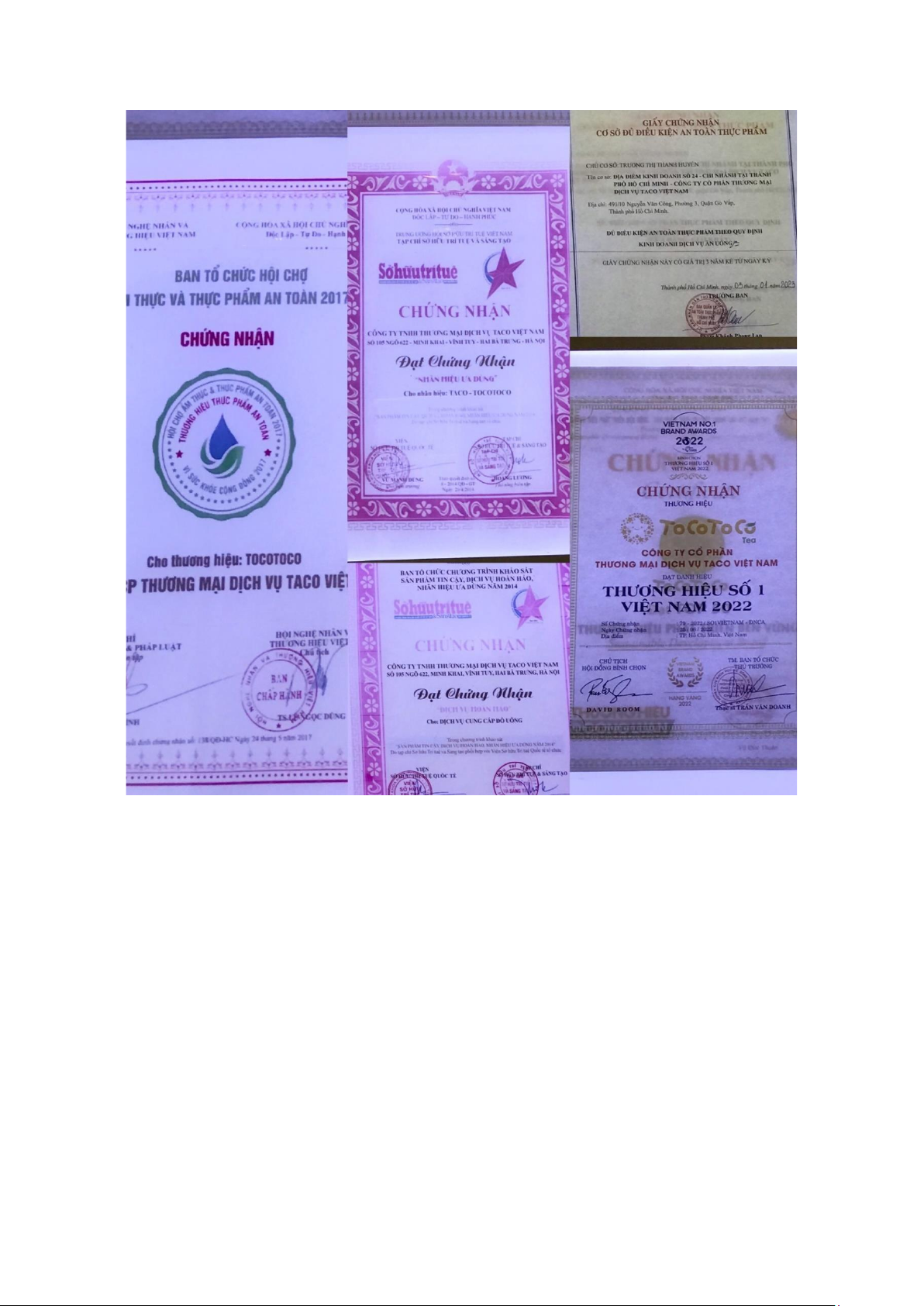và sau ó liên tiếp là các giấy chứng nhận, bằng khen về chất lượng hàng hoá và dịch vụ