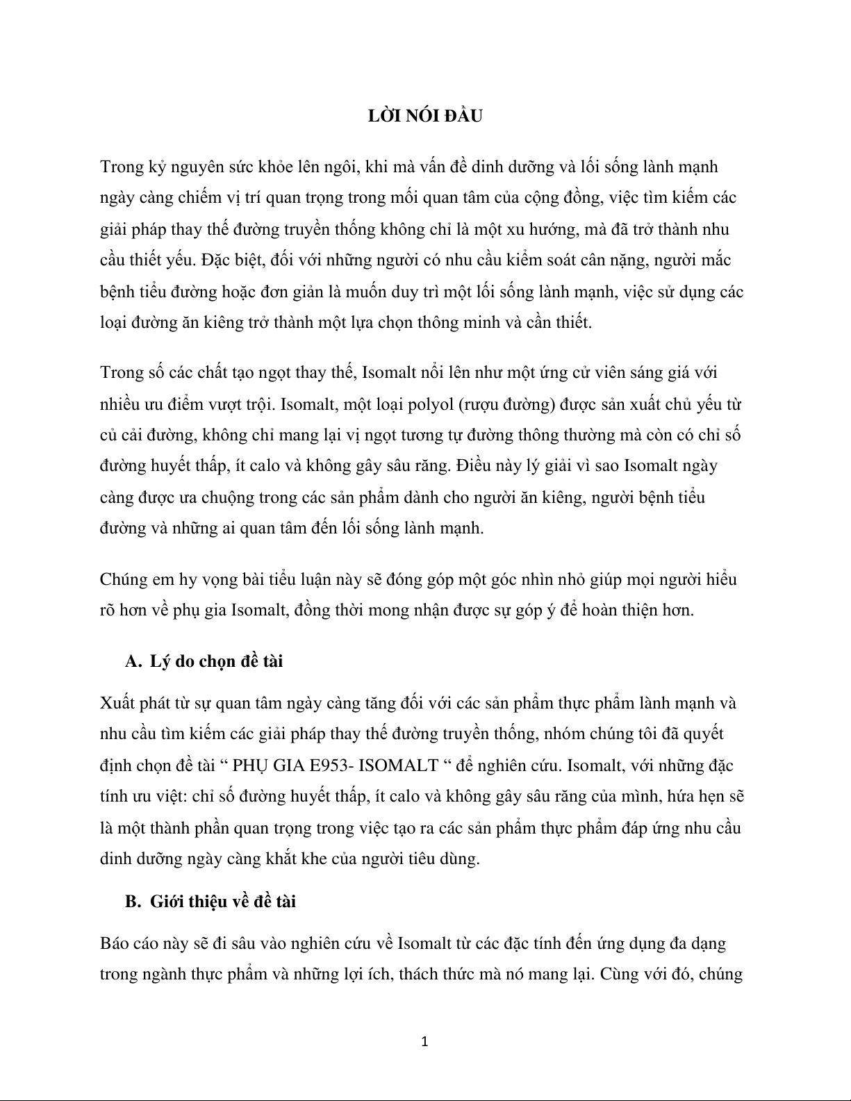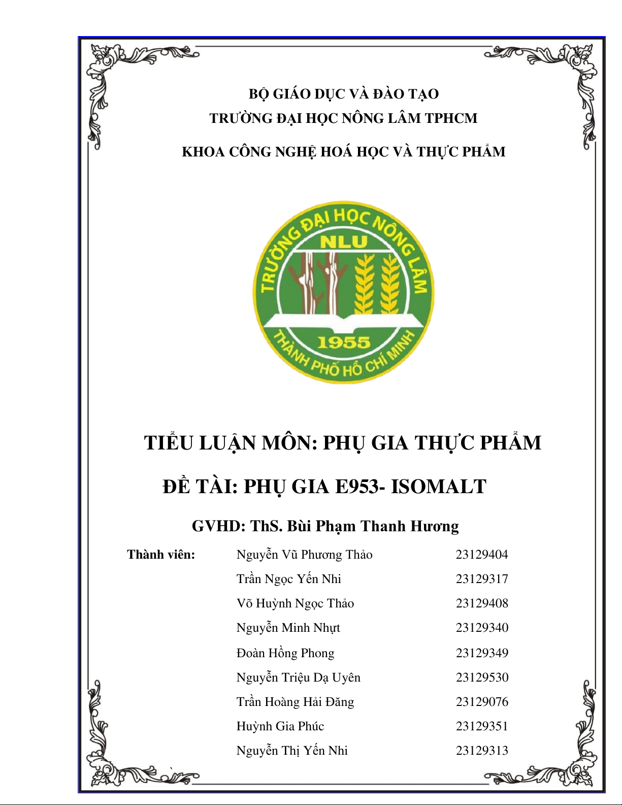 rõ hơn về phụ gia Isomalt, đồng thời mong nhận được sự góp ý để hoàn thiện hơn.
