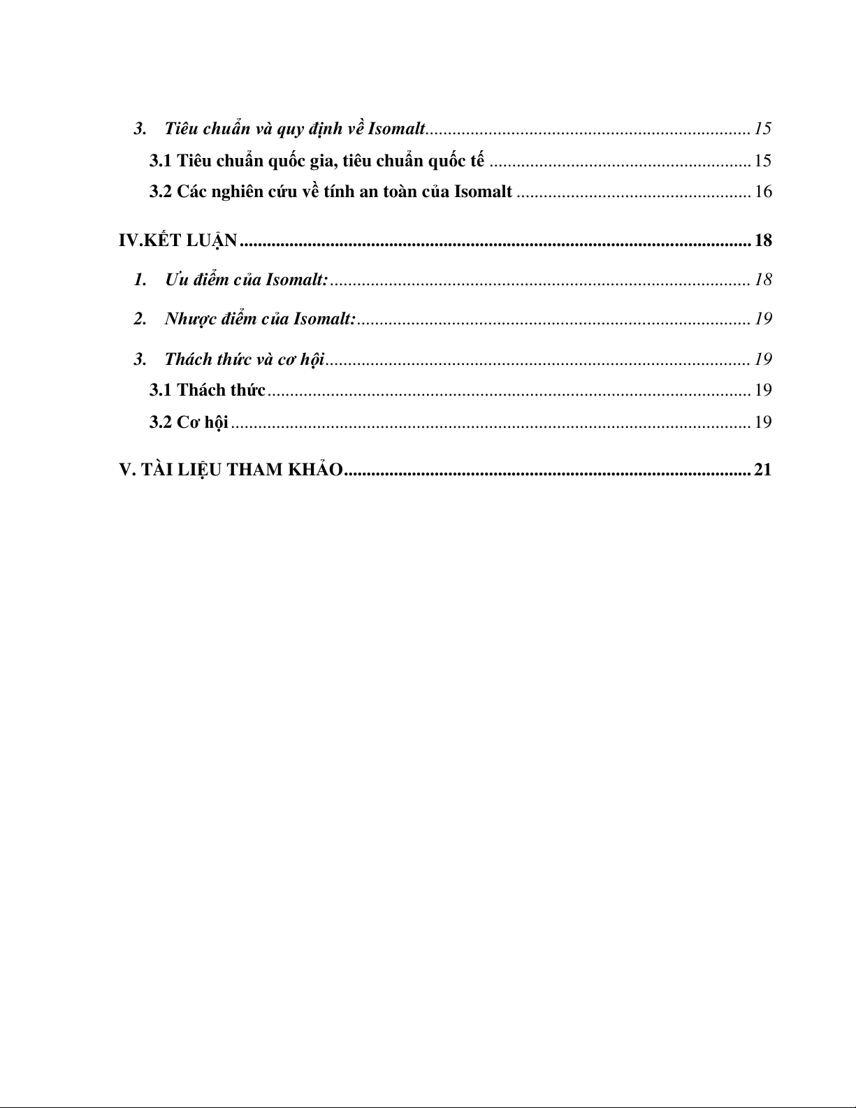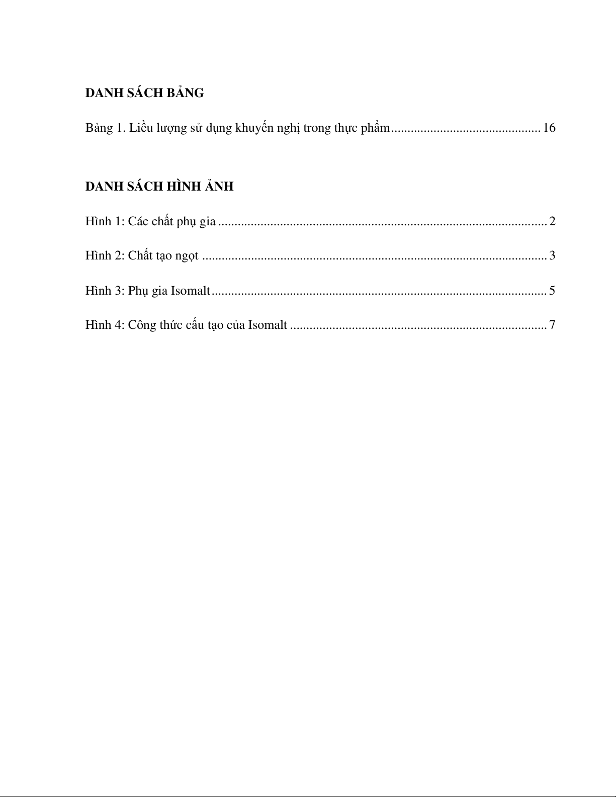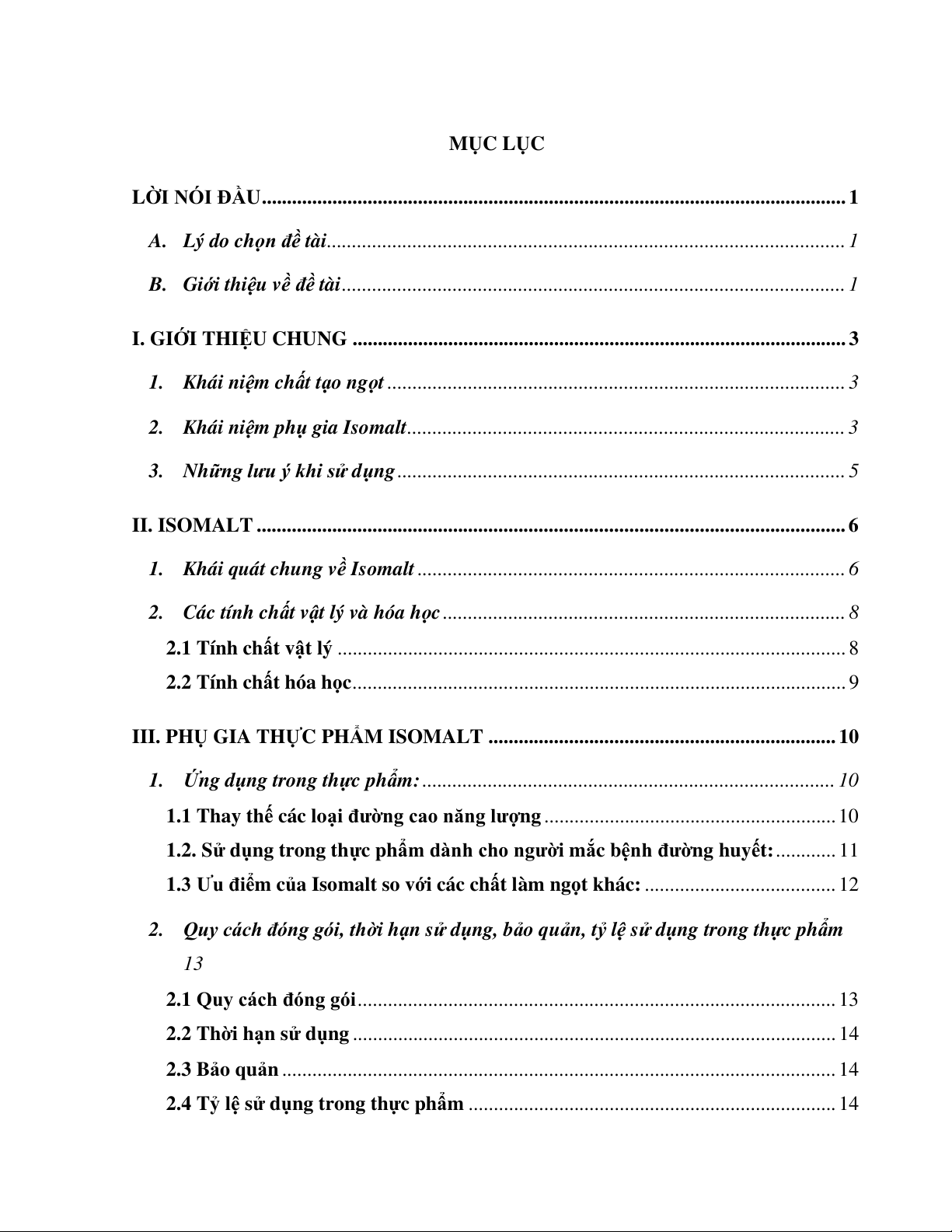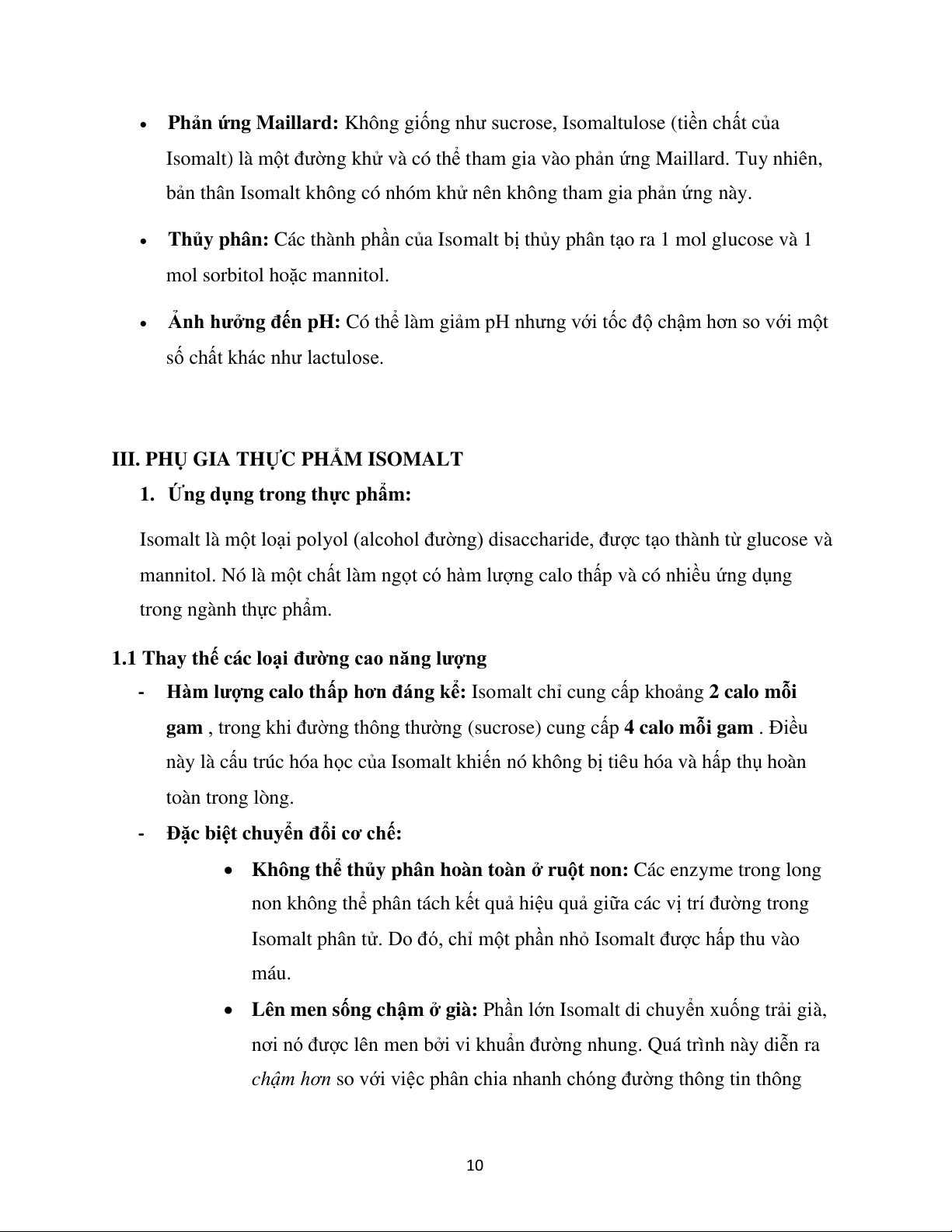 III. PHỤ GIA THỰC PHẨM ISOMALT . . . . . . . . . . . . . . . . . . . . . . . . . . . . . . . . . . . 10