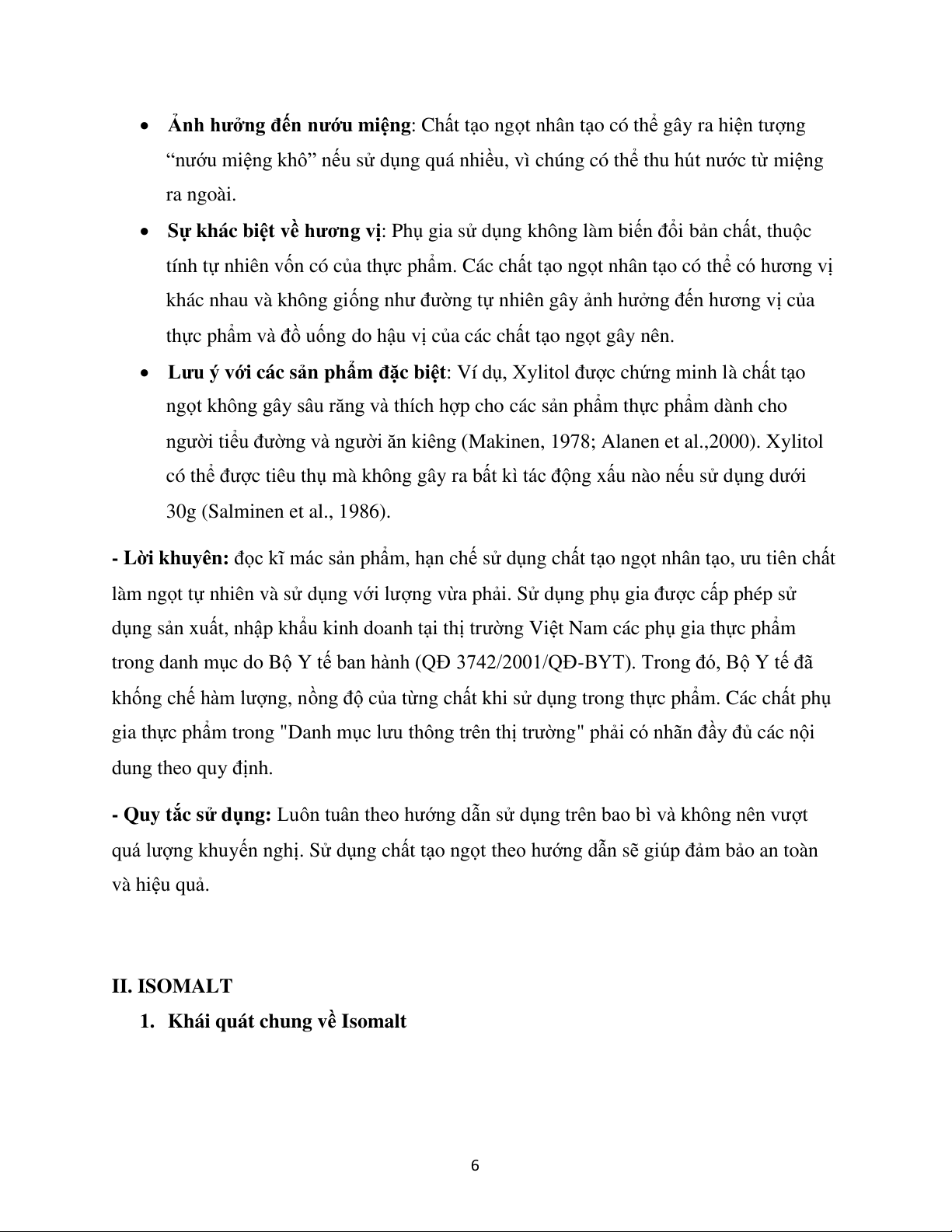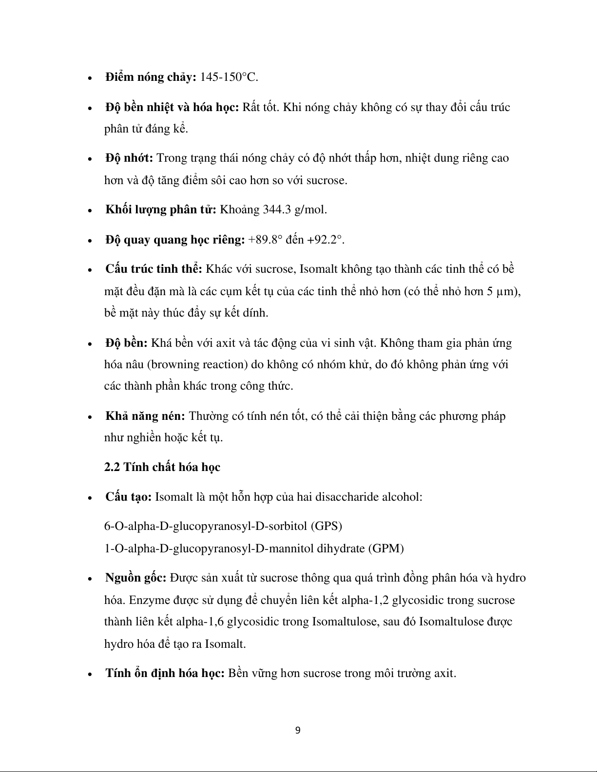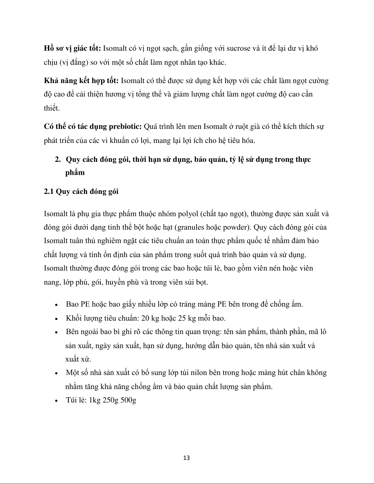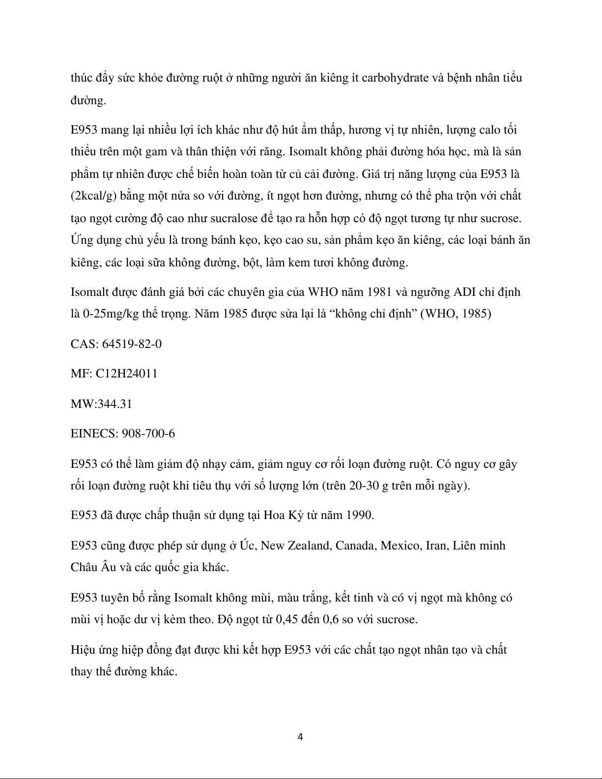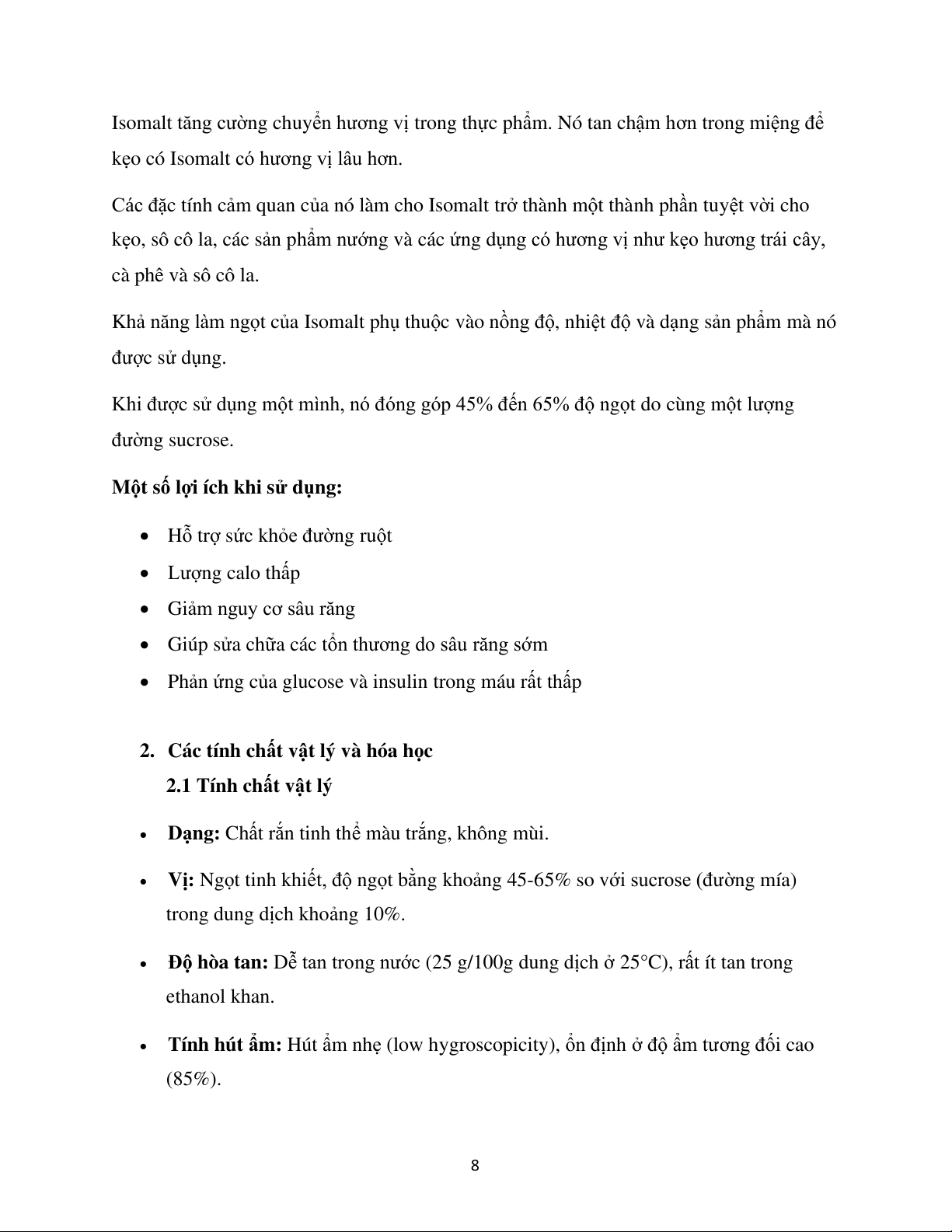 III. PHỤ GIA THỰC PHẨM ISOMALT . . . . . . . . . . . . . . . . . . . . . . . . . . . . . . . . . . . 10
