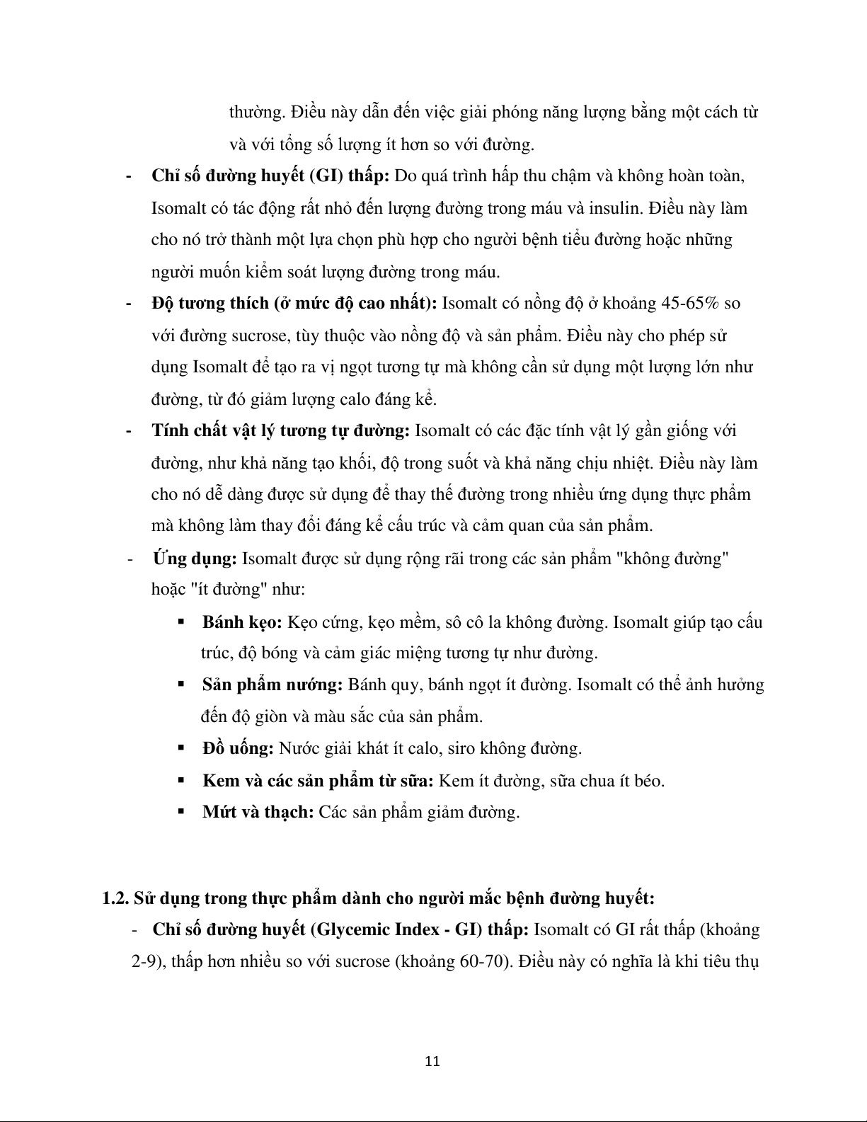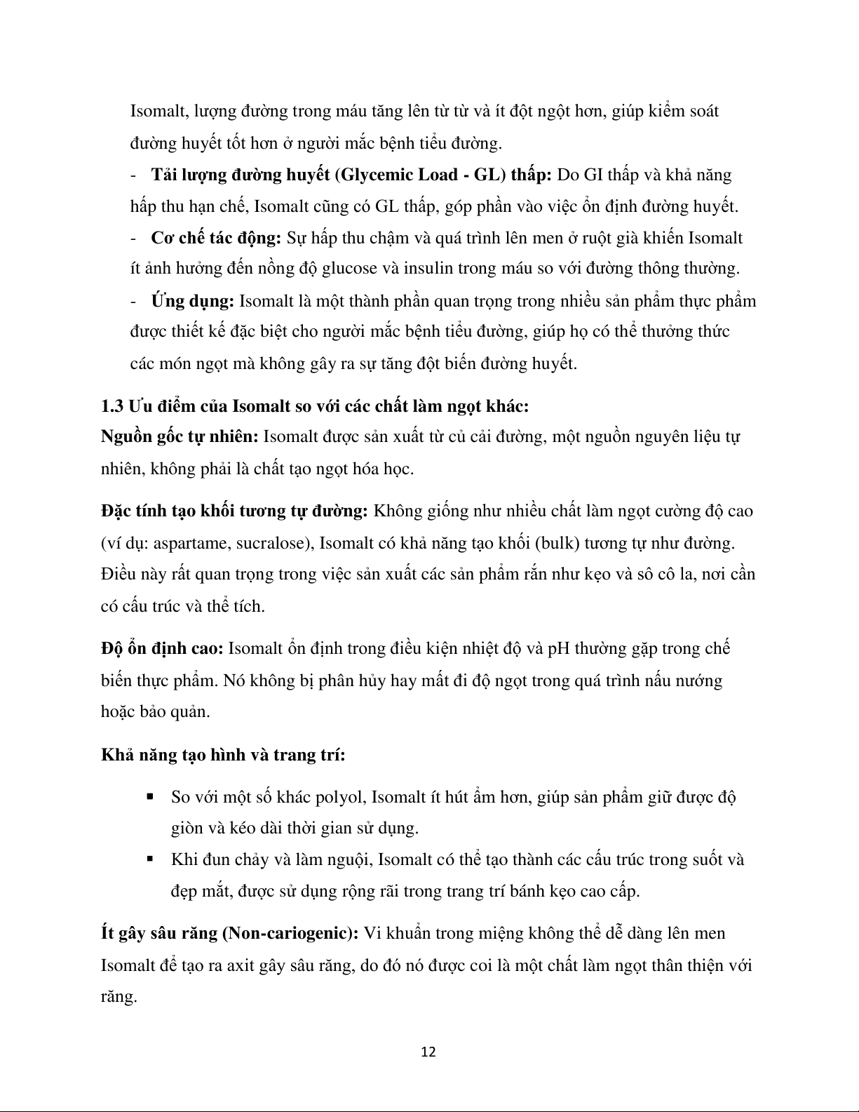 1.3 Ưu điểm của Isomalt so với các chất làm ngọt khác: . . . . . . . . . . . . . . . . . . . 12