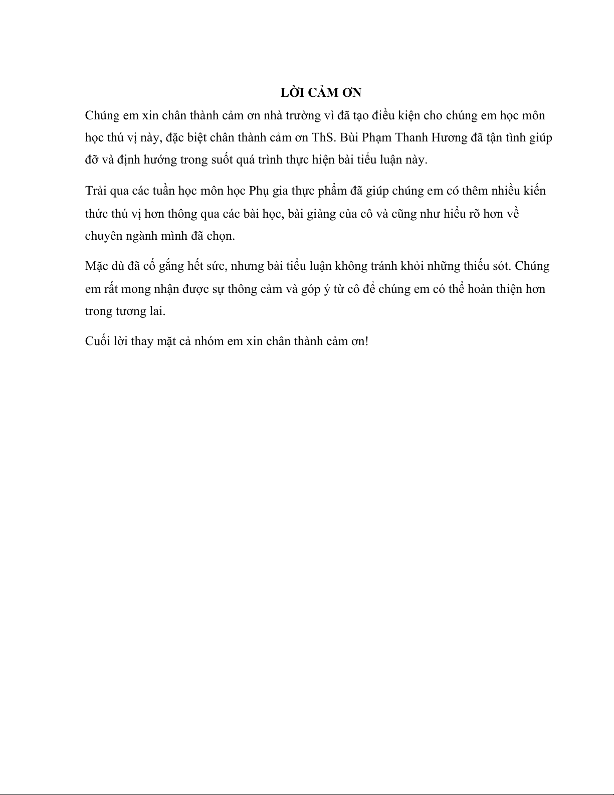 Trải qua các tuần học môn học Phụ gia thực phẩm đã giúp chúng em có thêm nhiều kiến