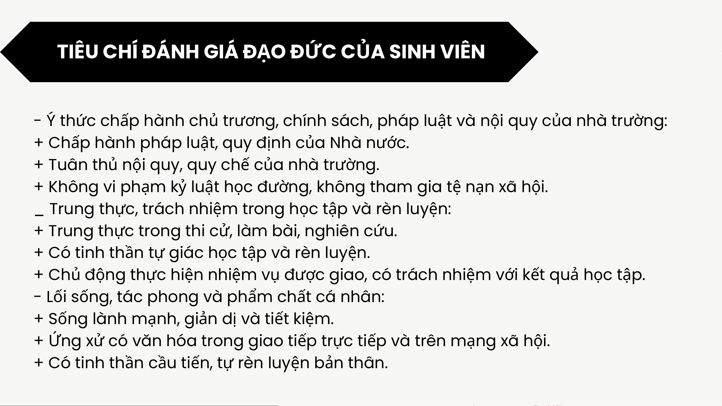 TIÊU CHÍ ĐÁNH GIÁ ĐẠO ĐỨC CỦA SINH VIÊN