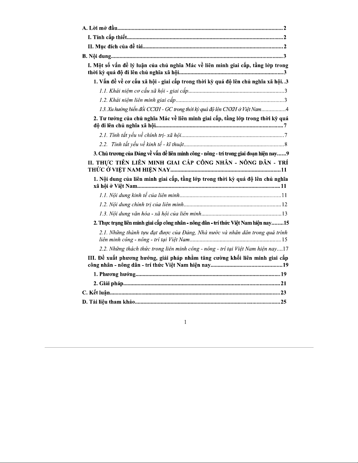 Tiểu luận nhóm: Vấn đề liên minh công-nông-trí thức ở VN (TRI116)
