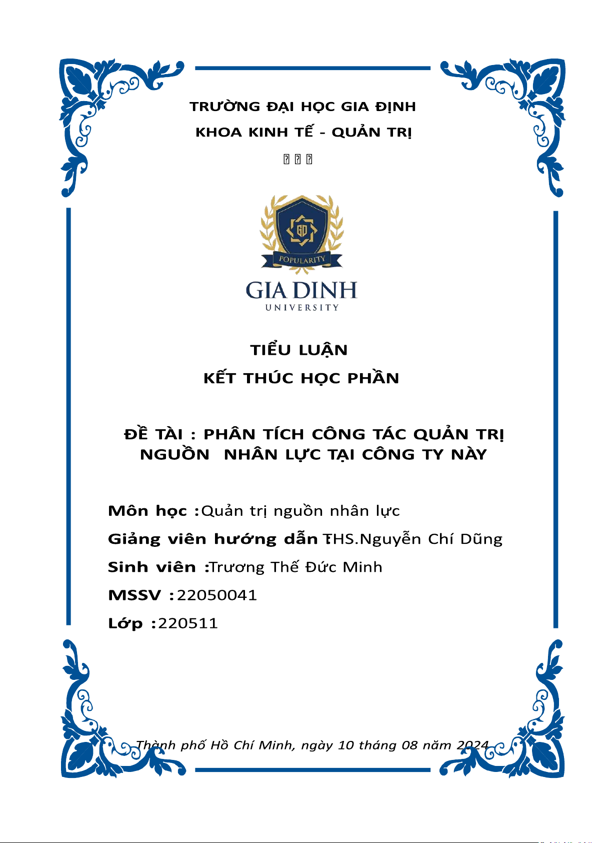 ĐỀ TÀI : PHÂN TÍCH CÔNG TÁC QUẢN TRỊ NGUỒN NHÂN LỰC TẠI CÔNG TY NÀY