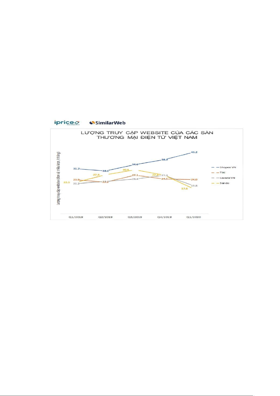 Hình 3: Lượt truy cập website của các sàn thương mại điện tử từ Q1/2019 đến Q1/2020. (Nguồn: IPrice)