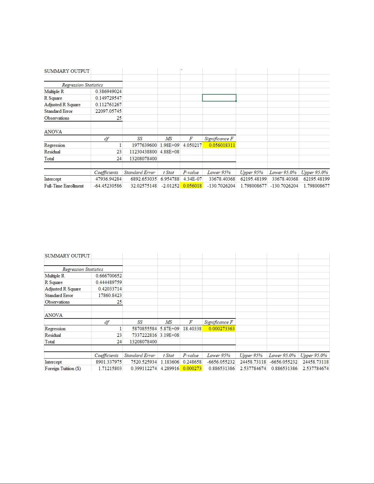 nếu P- value > 0.05 => không tác động lên biến phụ thuộc, bác bỏ giả thuyết H0 chấp nhận giả thuyết đối. 1. Full-Time Enrollment