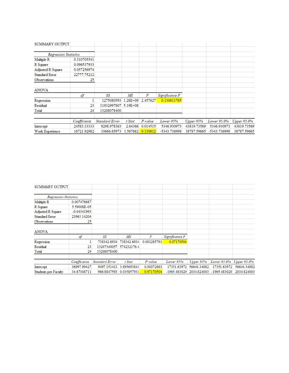 Từ bảng ANOVA ta thấy Significance F = 0.97170504 > 0.05 => mô hình hồi quy không phù hợp.