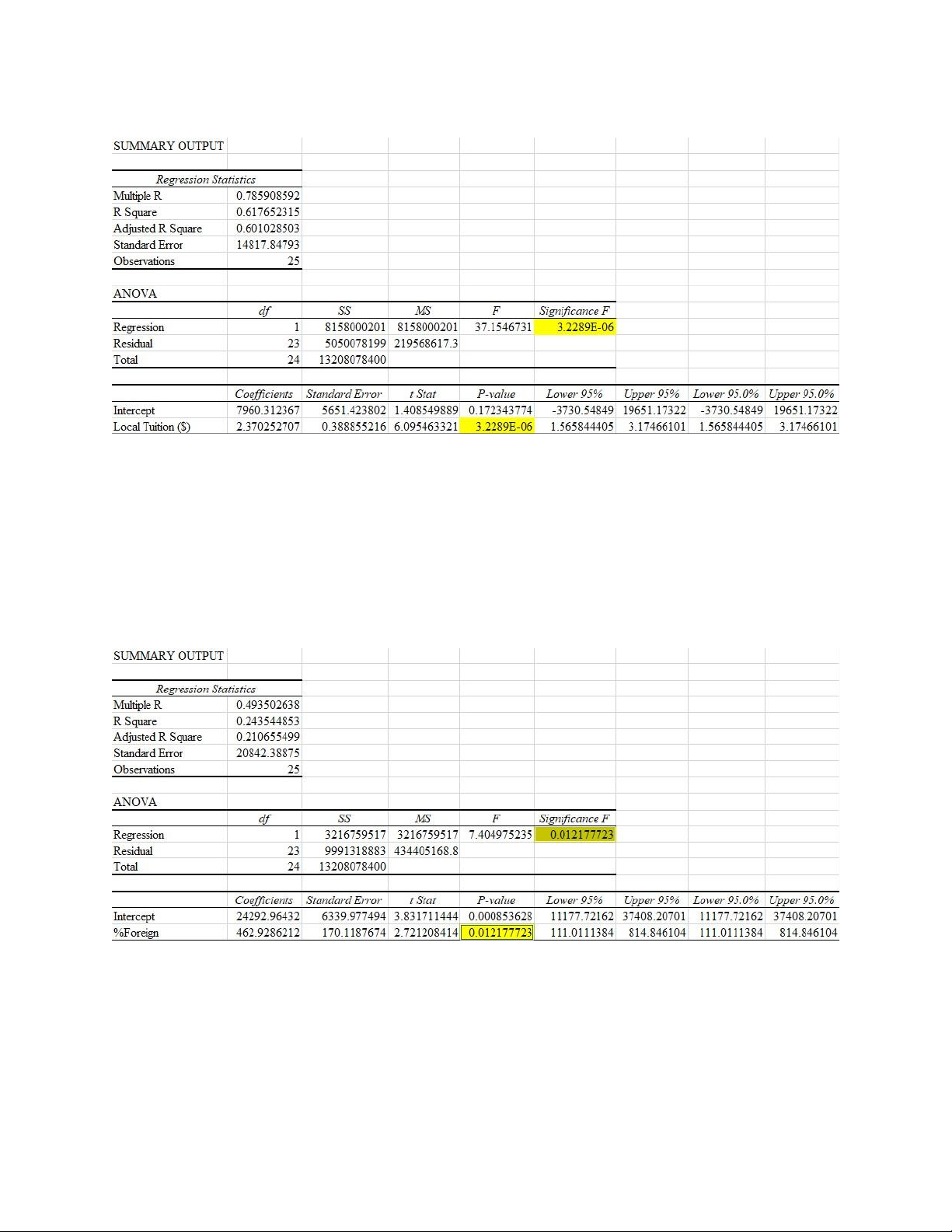 Từ bảng ANOVA ta thấy Significance F = 0.012177723 < 0.05 => mô hình hồi quy phù hợp.