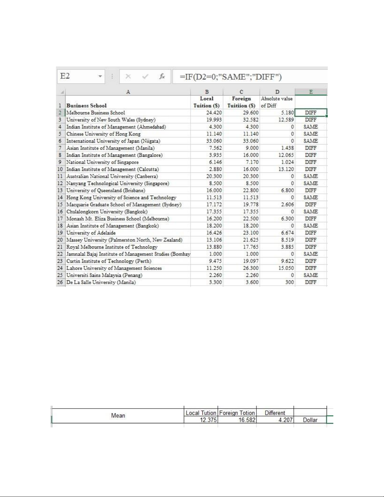 1. so sánh bất kì sự khác biệt giữa chi phí học phí địa phương và học phí nước ngoài: BẢNG 1 -