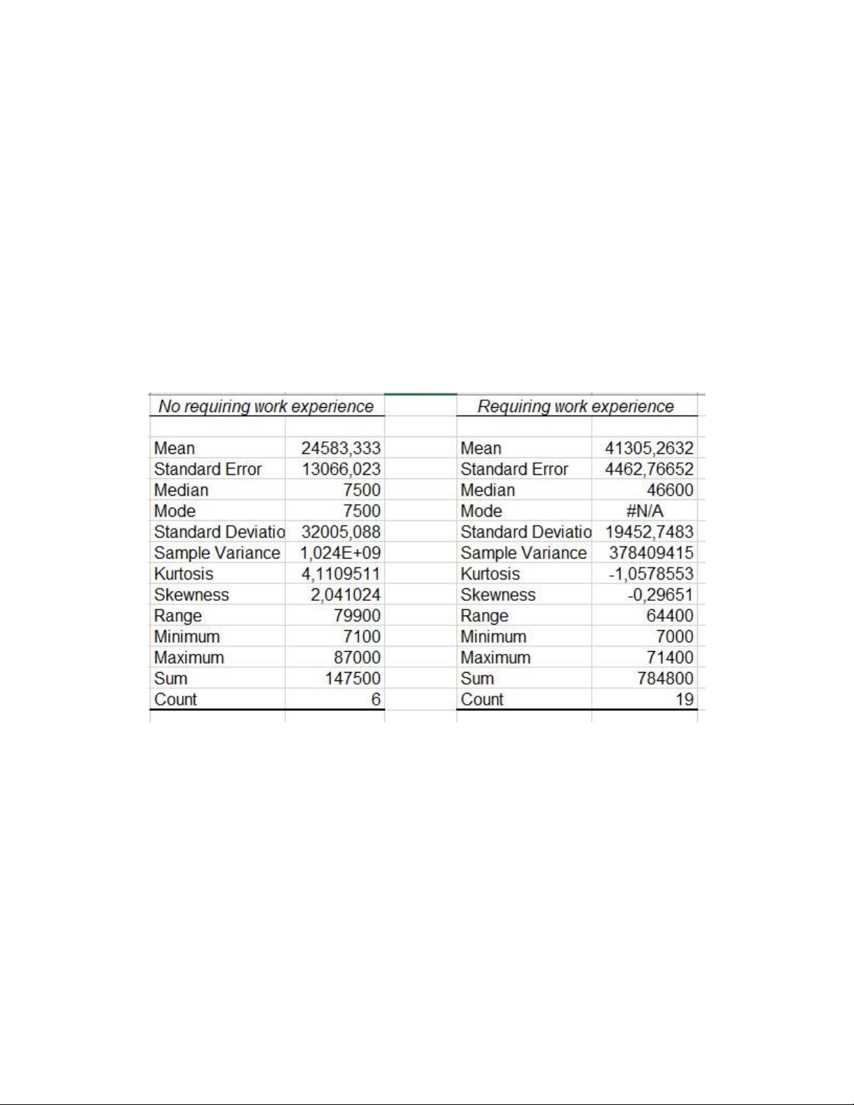 làm việc là 41305,26$. Cho thấy được sự khác biệt rõ rệt về kinh nghiệm làm việc