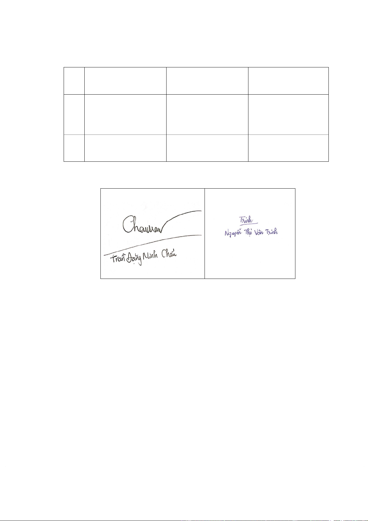 Các thành viên nhóm ký tên và ghi rõ họ tên: 1 2 3