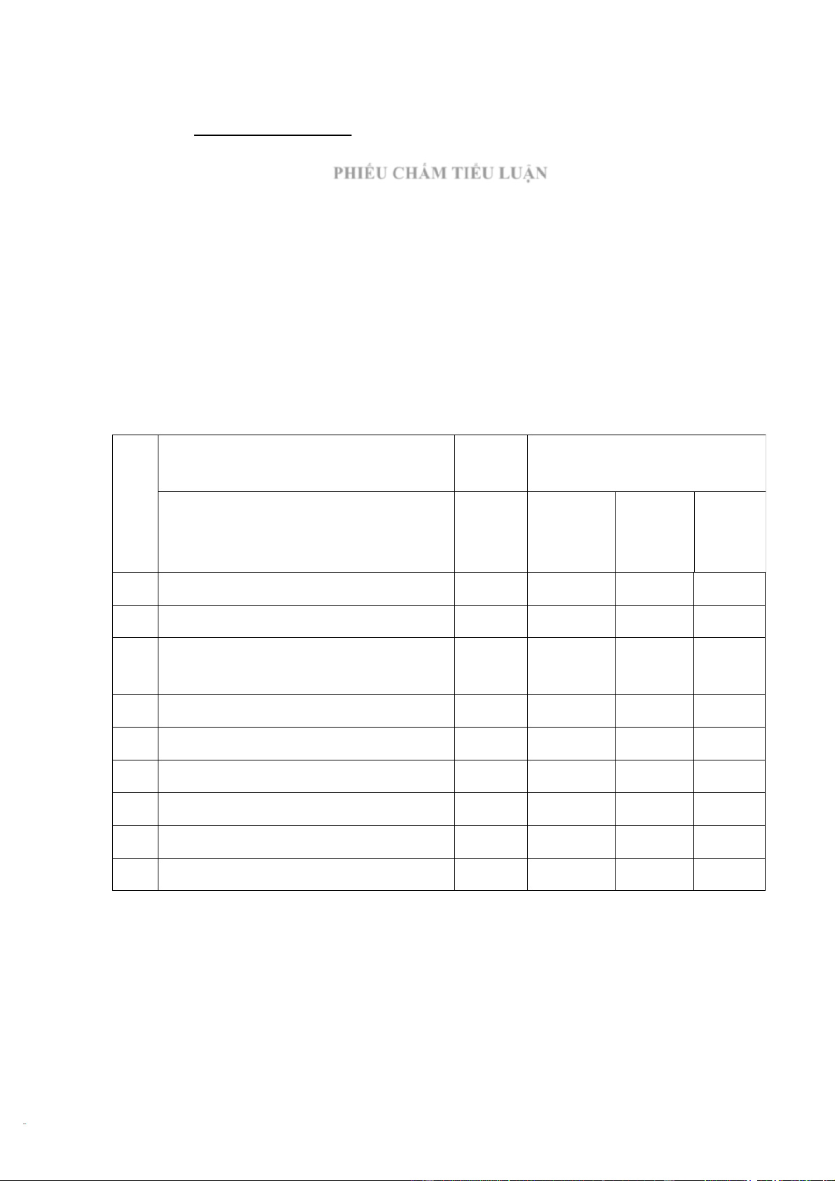 (Cho điểm vào ô trống, thang điểm 10/10) TT Tiêu chí đánh giá Điểm Điểm đánh giá tối đa Cán bộ Cán bộ Điểm chấm 1 chấm 2 thống nhất 1
