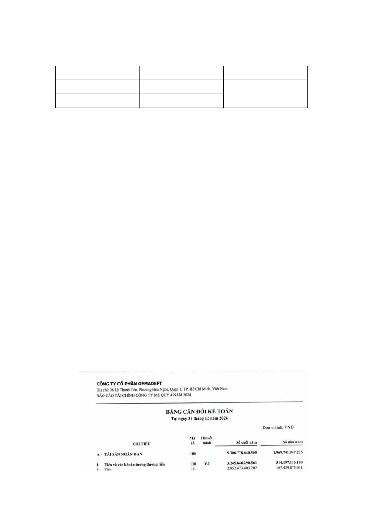 2.2.5. Bảng cân đối kế toán của Công ty cổ phần Gemadept