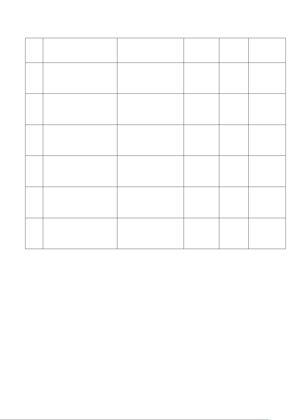 BẢNG PHÂN CÔNG NHIỆM VỤ STT Họ tên Nhiệm vụ Mức độ Ký tên Điểm cá hoàn nhân thành (%) 1 Nguyễn Khánh Chương 90 Soạn nội dung chương III 2 Nguyễn Mỹ Hạnh Tổng hợp nội dung, 90 soạn word 3 Trần Tuấn Hưng 90 Soạn nội dung chương I 4 Trần Nhựt Linh Soạn nội dung 80 chương II 5 Thái Phương Nghi Soạn nội dung 90 chương IV 6 Huỳnh Anh Thư 100 Soạn khung nội dung,