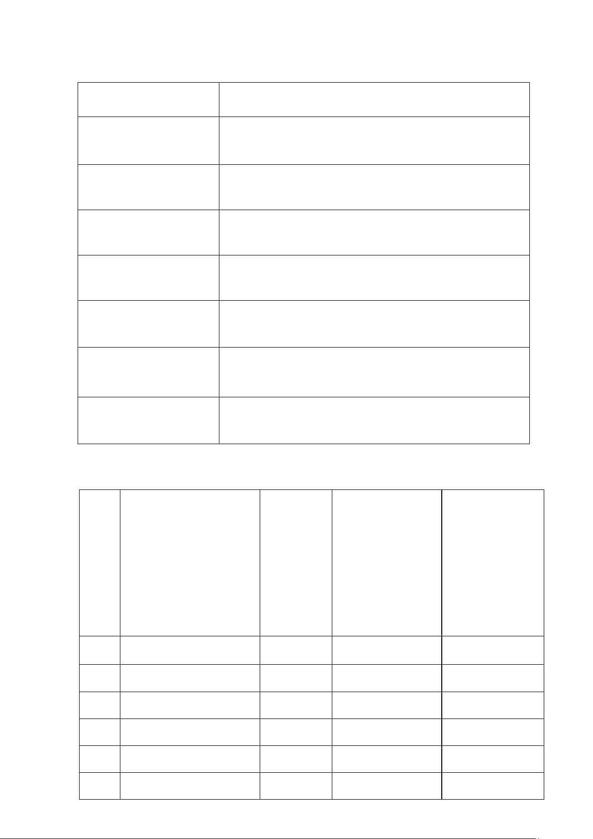 BẢNG ĐÁNH GIÁ CÁC THÀNH VIÊN TRONG NHÓM 8 STT Họ và tên Mã số Tự đánh giá SV mức độ hoàn Tập thể nhóm thành công việc ( đánh giá mức Tối đa 100%) độ hoàn thành công việc (Tối đa 100%) 1 Nguyễn Thị Hoài 2022606800 98% 99% 2 Nguyễn Thị Trang 2022601238 98% 99% 3 Đinh Thị Xuân 2022606707 96% 98% 4 Trịnh Hữu Thắng 2021608042 95% 97% 5