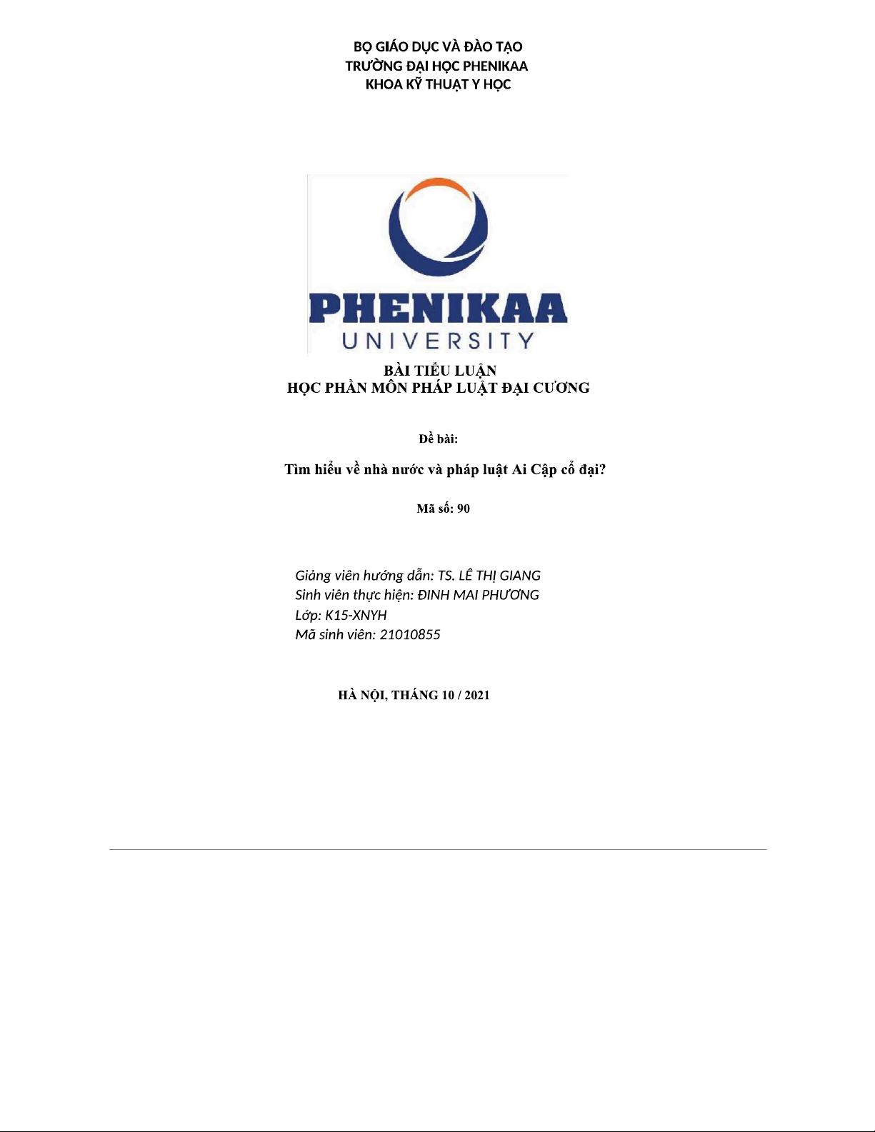 Tiểu Luận PHÁP LUẬT ĐẠI CƯƠNG: Tìm Hiểu Nhà Nước và Pháp Luật Ai Cập Cổ Đại
