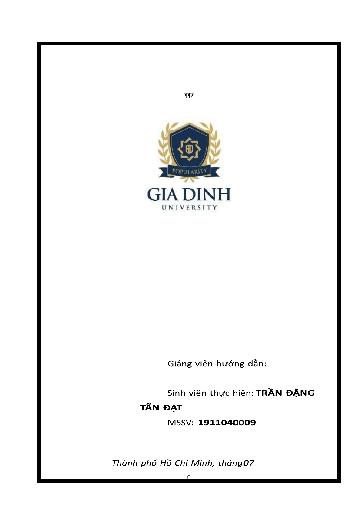 thực và tuân thủ nguyên tắc đạo đức và quy tắc của Trường Đại học Gia Định. Ngày 20 tháng 07 năm 2023 Trần Đặng Tấn Đạt 4 lOMoAR cPSD| 60772721 MỤC LỤC