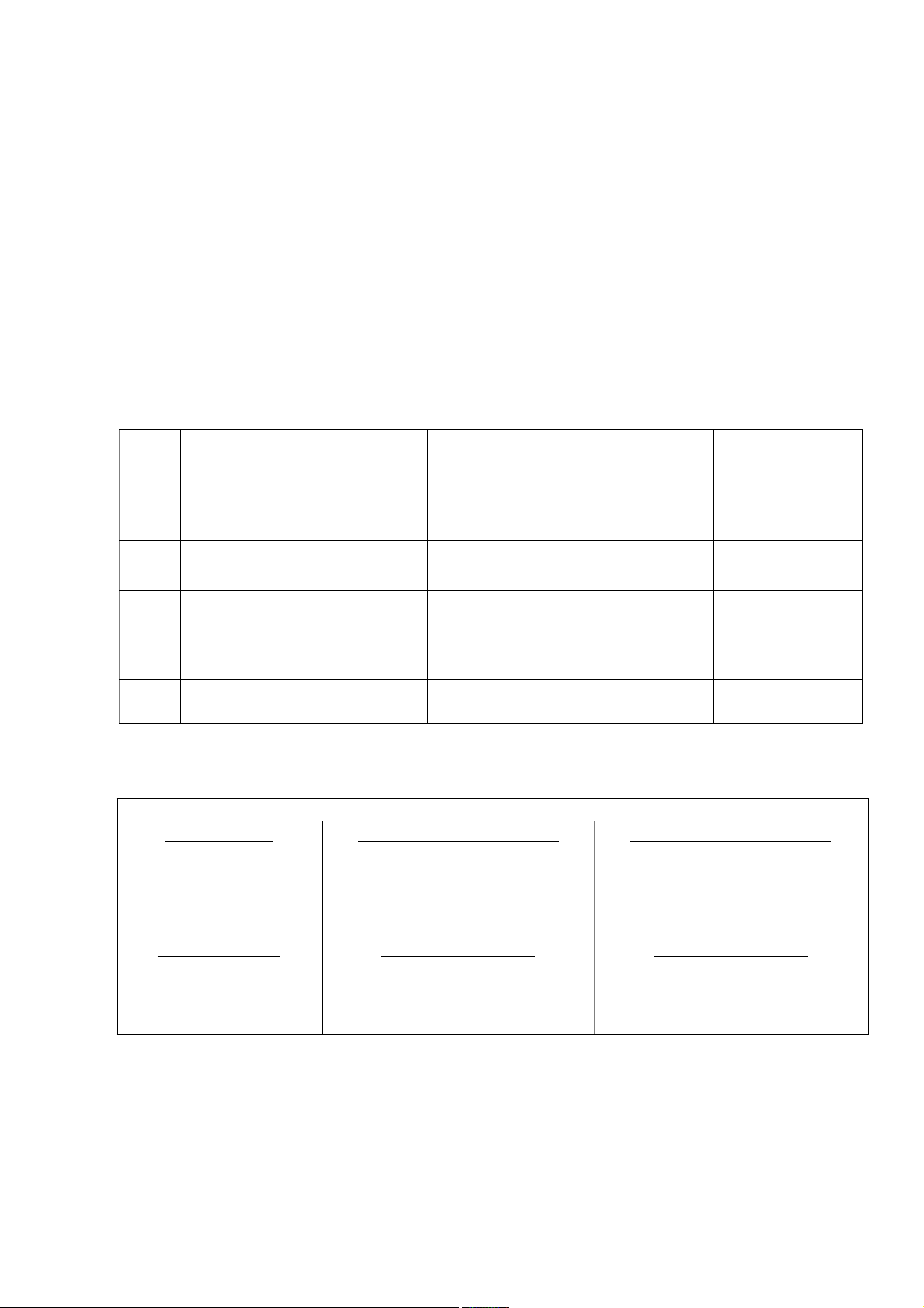 Bảng tự đánh giá của nhóm: STT Họ và tên