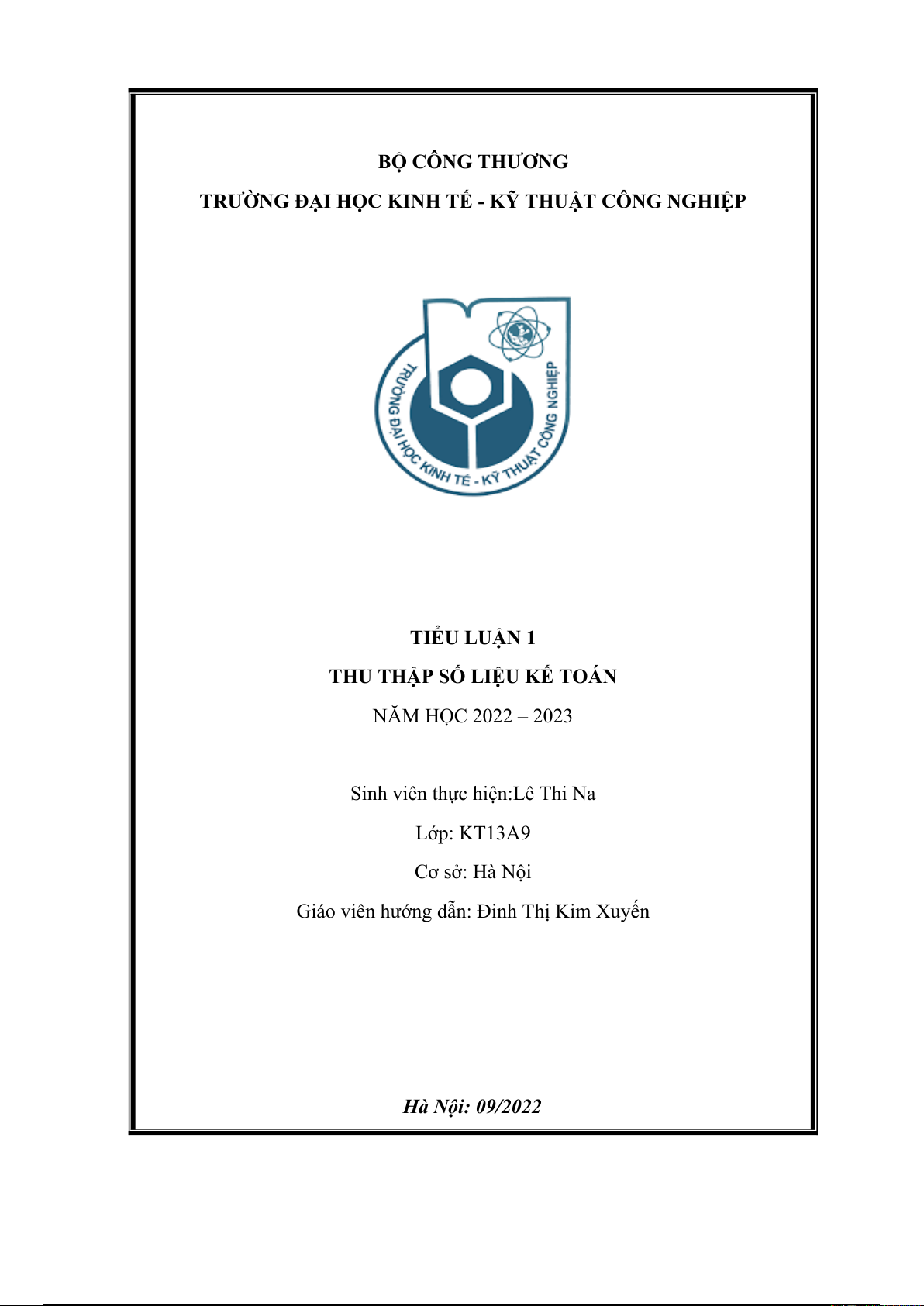 TRƯỜNG ĐẠI HỌC KINH TẾ - KỸ THUẬT CÔNG NGHIỆP TIỂU LUẬN 1