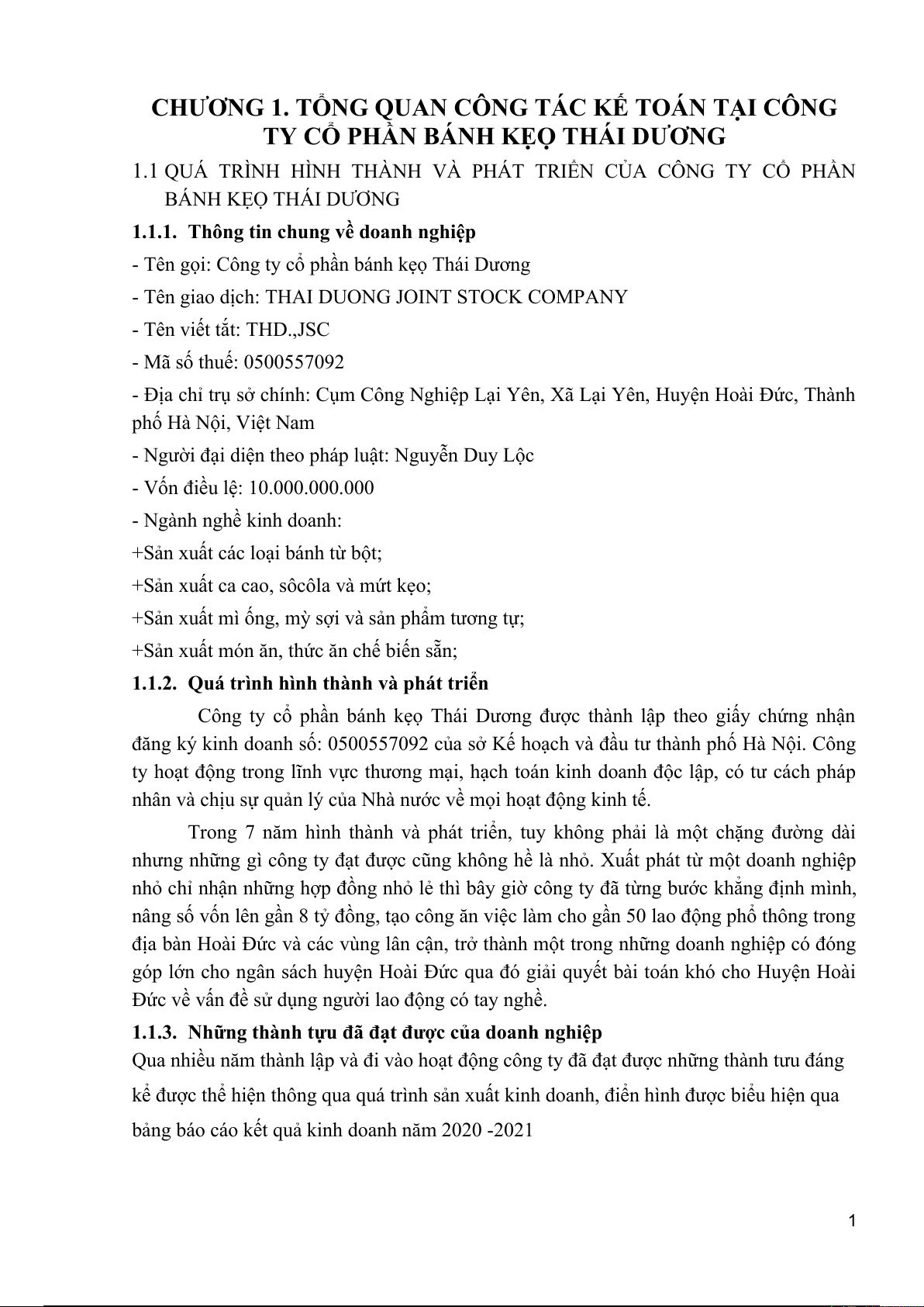 CHƯƠNG 1. TỔNG QUAN CÔNG TÁC KẾ TOÁN TẠI CÔNG TY CỔ PHẦN BÁNH