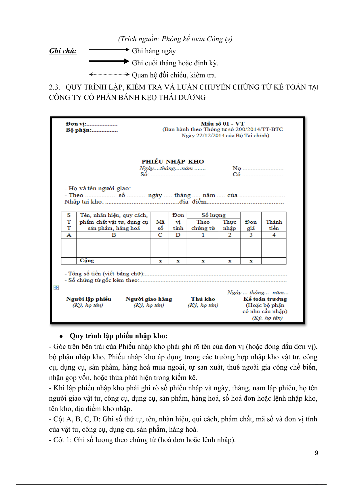 - Khi lập phiếu nhập kho phải ghi rõ số phiếu nhập và ngày, tháng, năm lập phiếu, họ tên