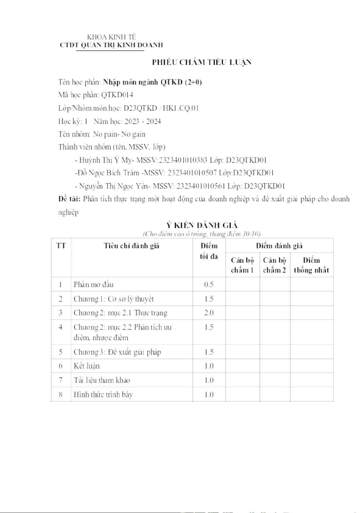 Lớp/Nhóm môn học: D23QTKD / KITE.CQ. 01