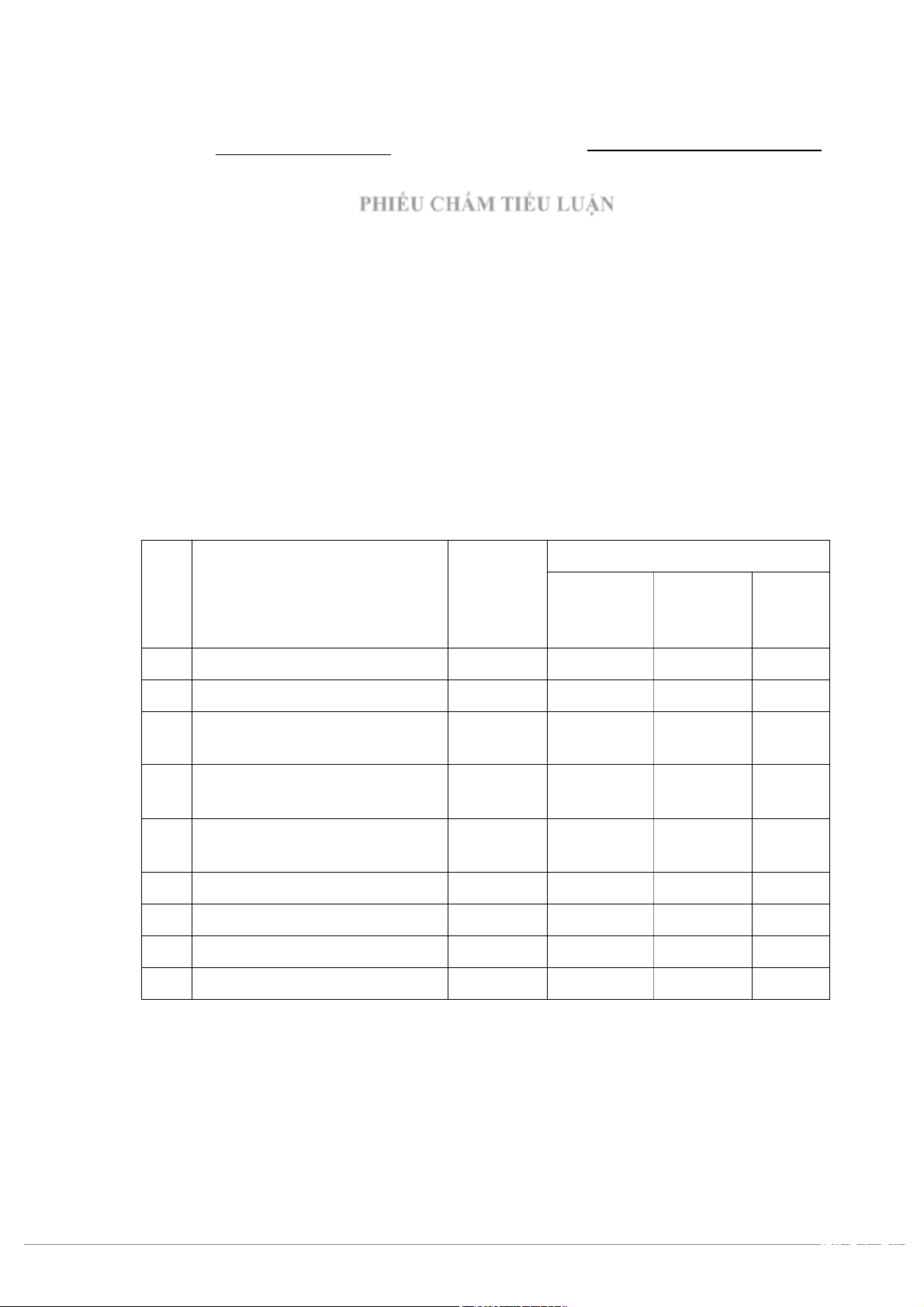 PHIẾU CHẤM TIỂU LUẬN