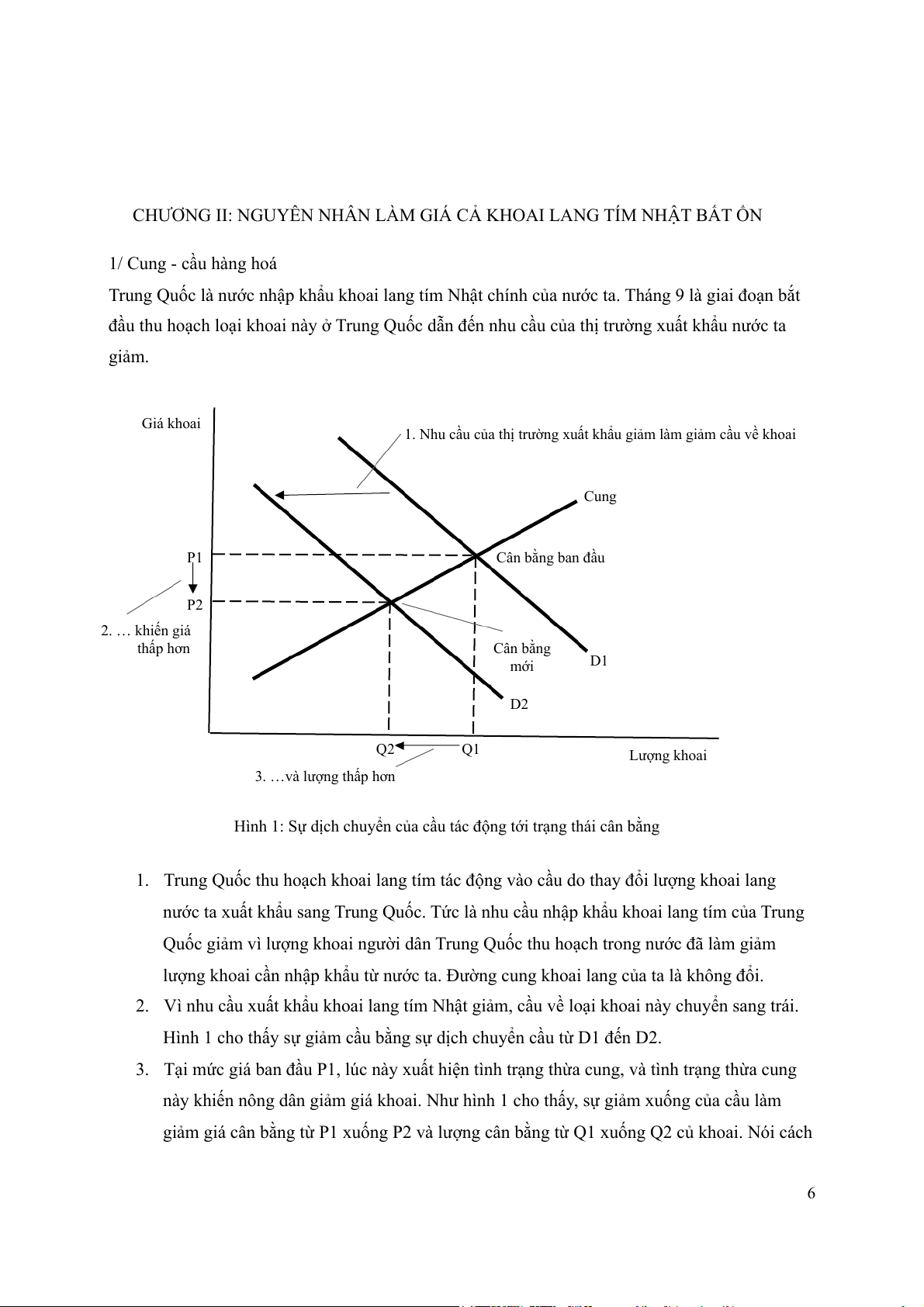 này khiến nông dân giảm giá khoai. Như hình 1 cho thấy, sự giảm xuống của cầu làm