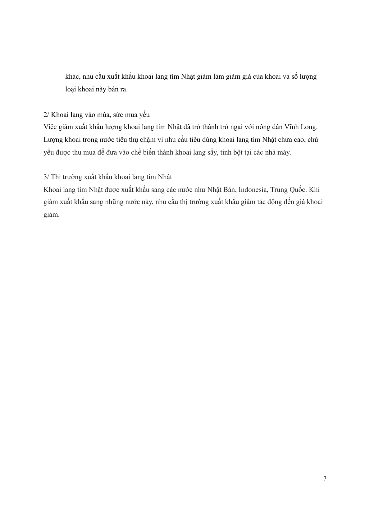 khác, nhu cầu xuất khẩu khoai lang tím Nhật giảm làm giảm giá của khoai và số lượng loại khoai này bán ra.